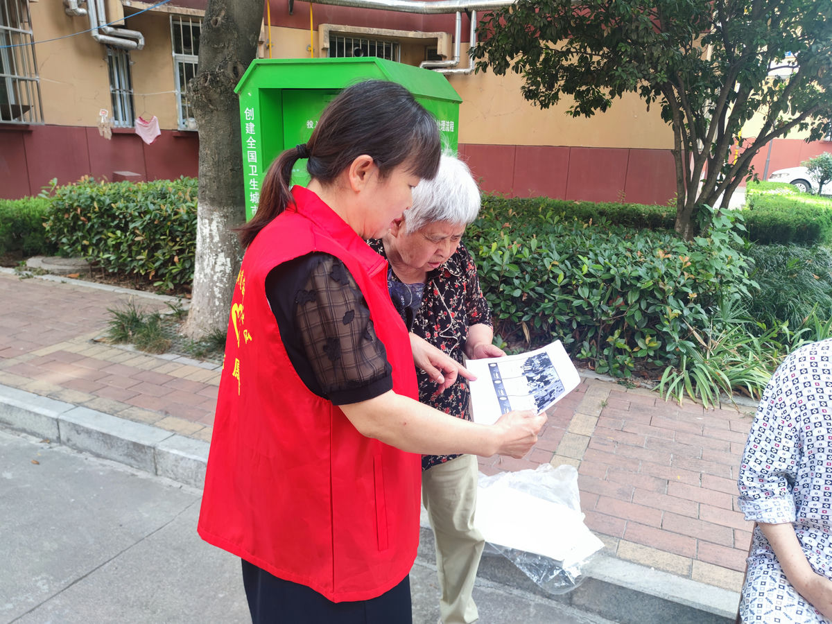 社区工作人员对辖区居民进行慈善捐款事项进行宣传