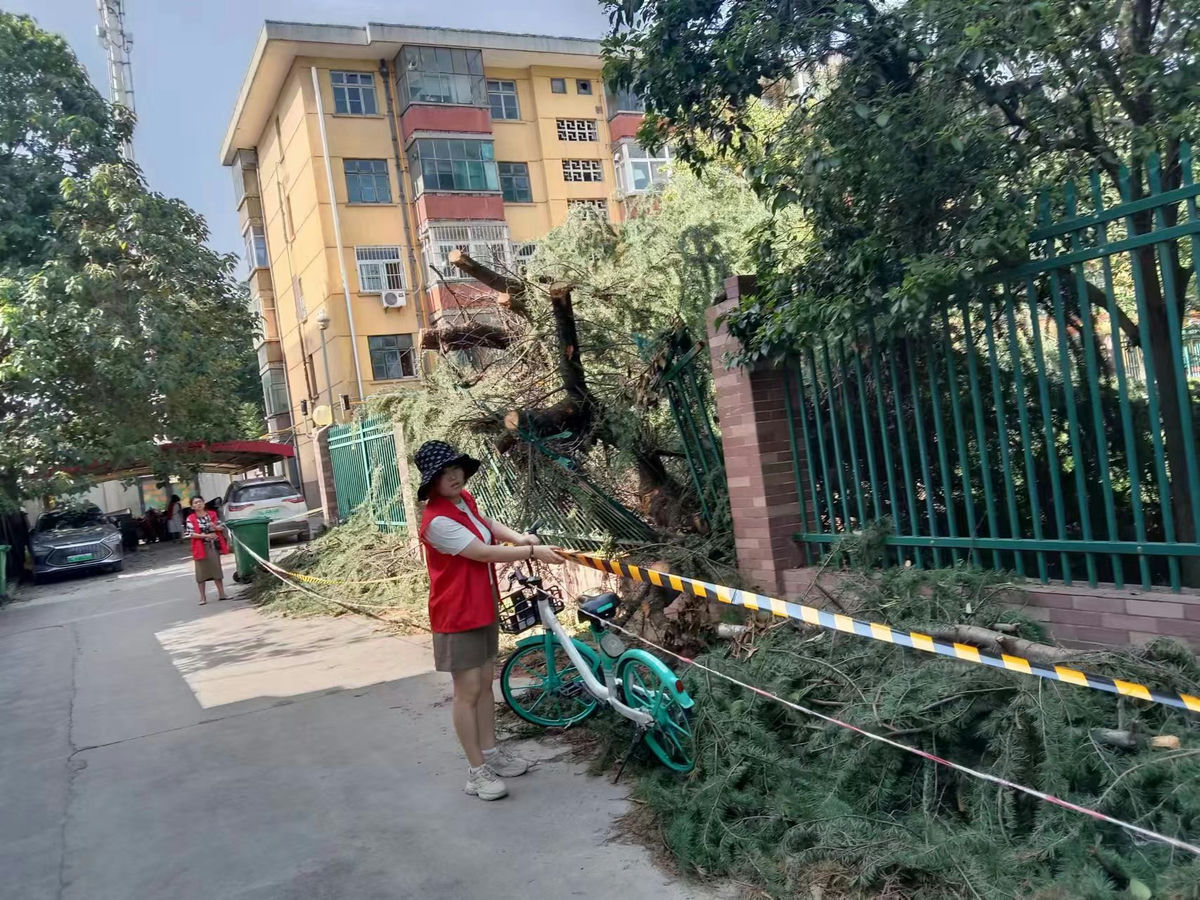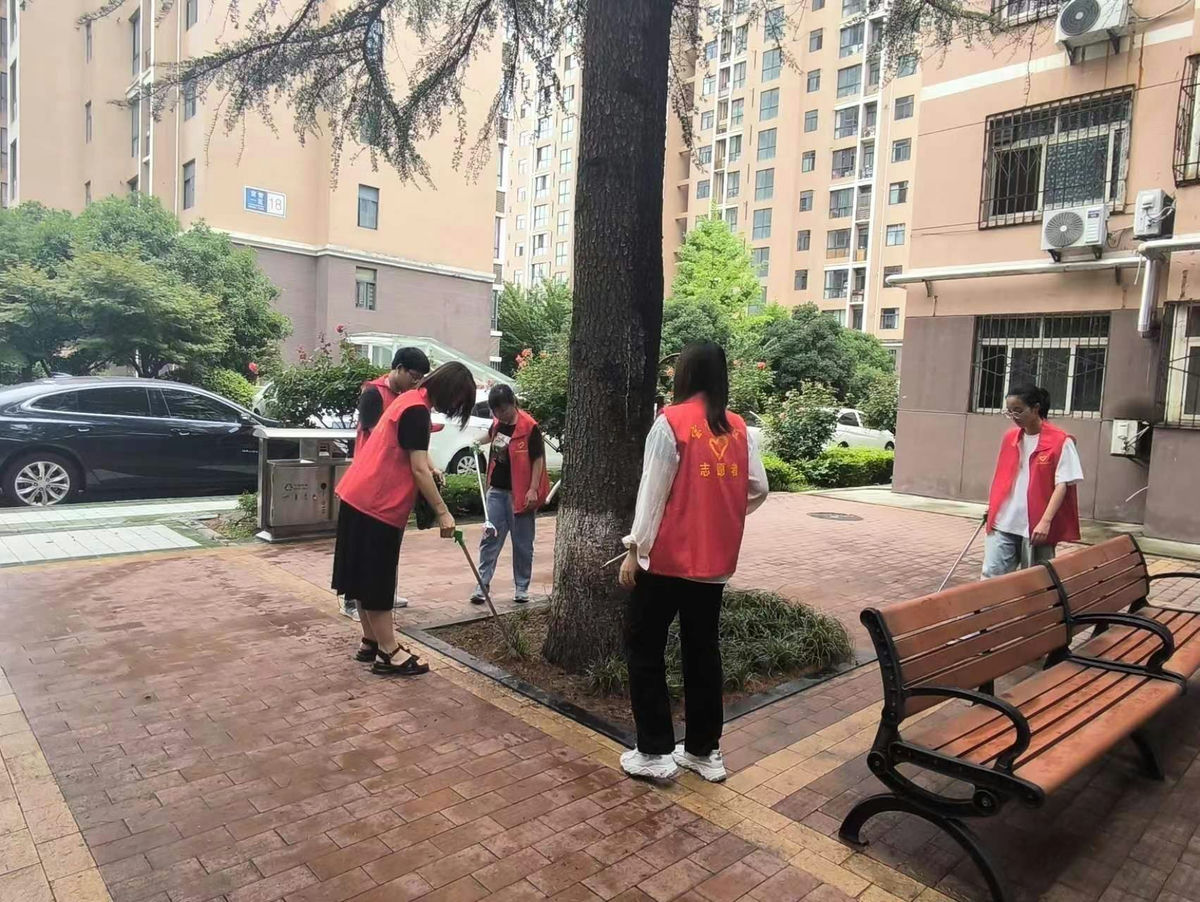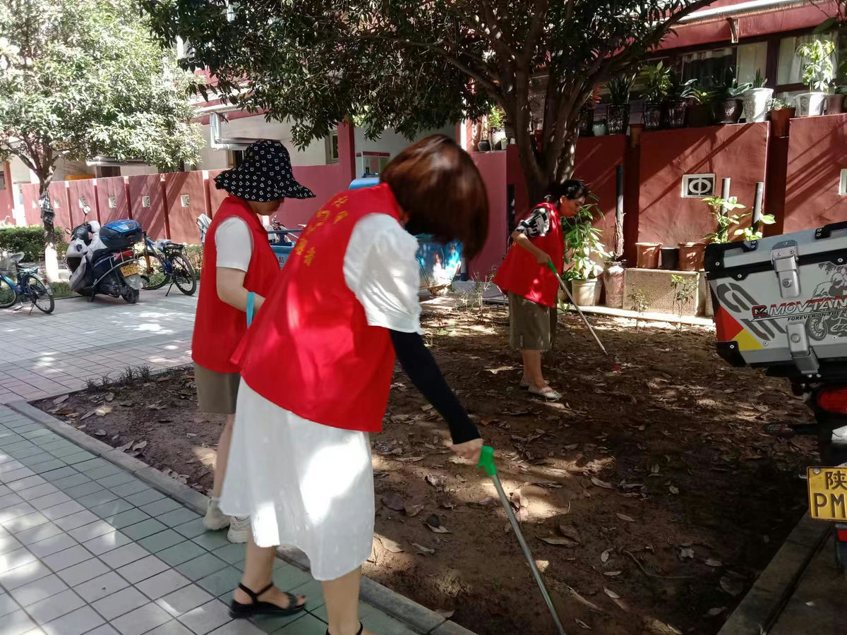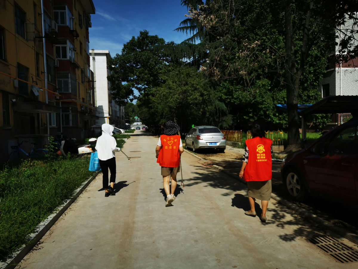 社区组织志愿者对卫校家属院进行消防安全检查、雨后汛情检查,同时进行环境卫生整治活动。
