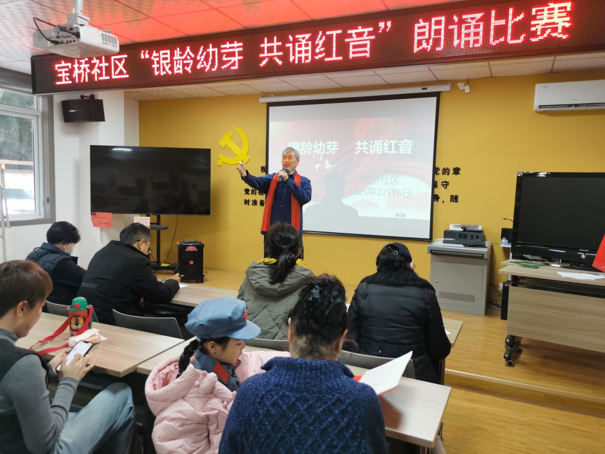 银龄长者与萌娃同台,诵读红色经典篇目,以声传情,传承红色基因,共筑社区红色文化氛围。