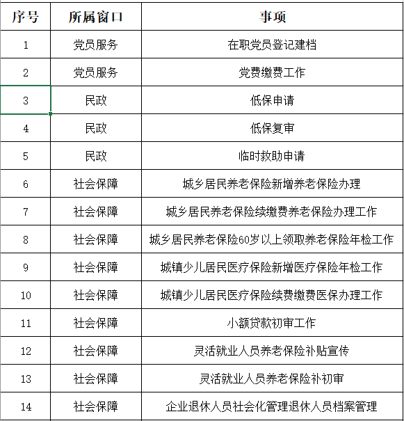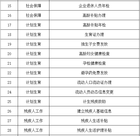 社区办事项目清单