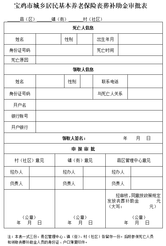 宝鸡市城乡居民社会养老保险丧葬费补助金申请所需资料与流程办理指南