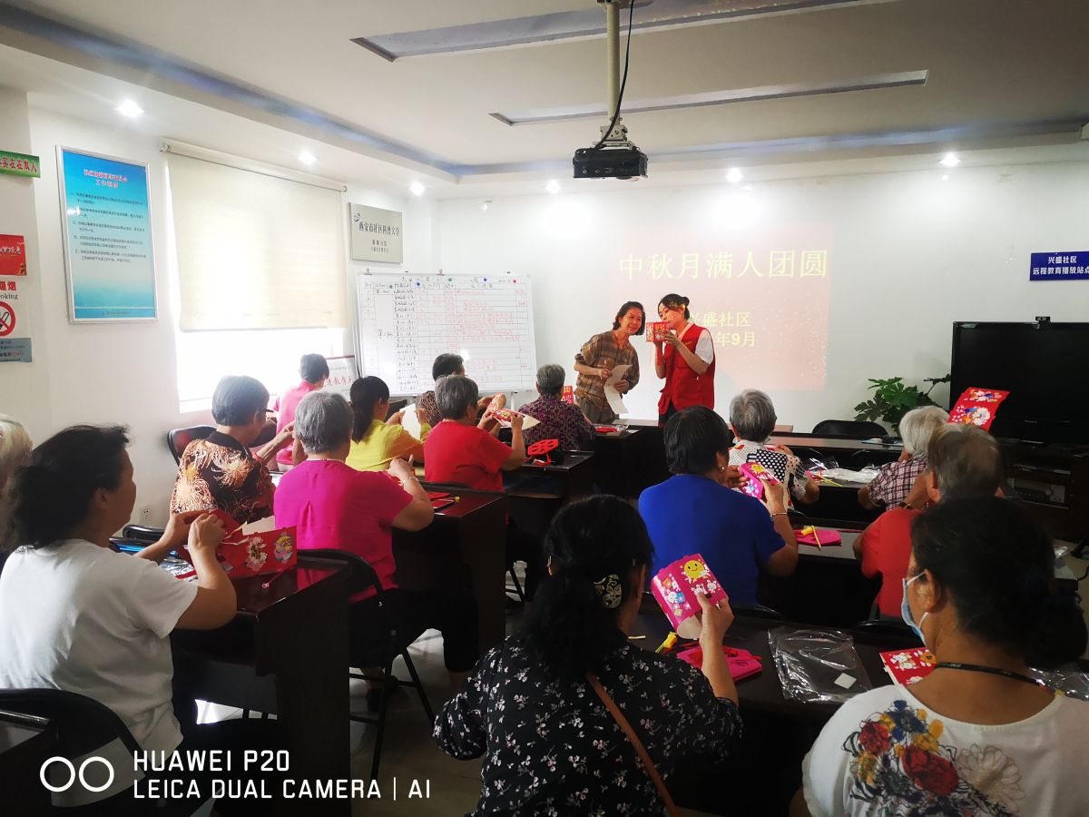秋风送爽、丹桂飘香。农历8月15日是我国重要的传统节日“中秋节”。为了弘扬中华民族传统文化,营造浓厚的节日氛围,9月15日下午,兴盛社区开展了主题为“中秋月满人团圆” 手工灯笼制作活动。