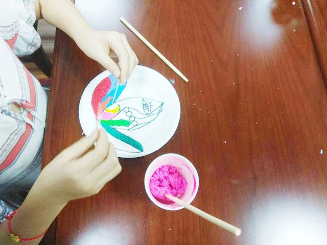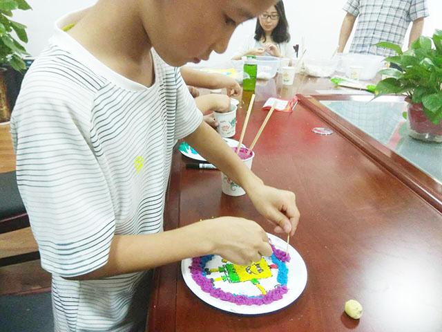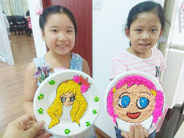 活动中,老师首先为孩子们讲解了纸、水、彩色颜料、竹筷、牙签、乳胶等制作原料的使用方法,再以有关纸的有趣地故事和制作纸浆的体验导入本次活动的主题,在老师巧妙的引导下,现场小学员们都积极热情地参与到纸浆画的制作中,纯白的纸浆被孩子们赋予了各种美丽的颜色,固定在事先绘制好的形状上,有些在场的家长们也不由自主的参与到活动中来。不一会,孩子们的作品一件件生动的呈现出来了:蓝色的大海里五彩斑斓的鱼儿游来游去、美丽的七色花、欢快的海绵宝宝、美丽的小公主等等。每件作品巧妙构思、精心制作,充分体现了孩子们的聪明才智和丰富的想象力。