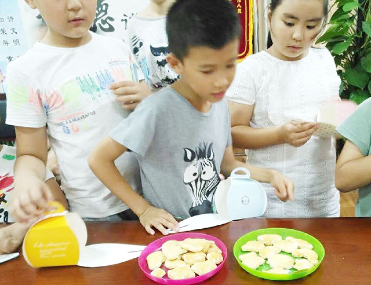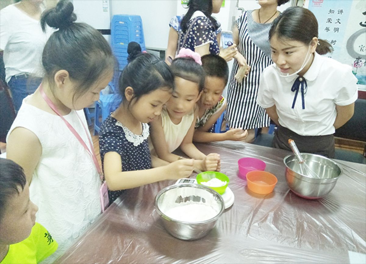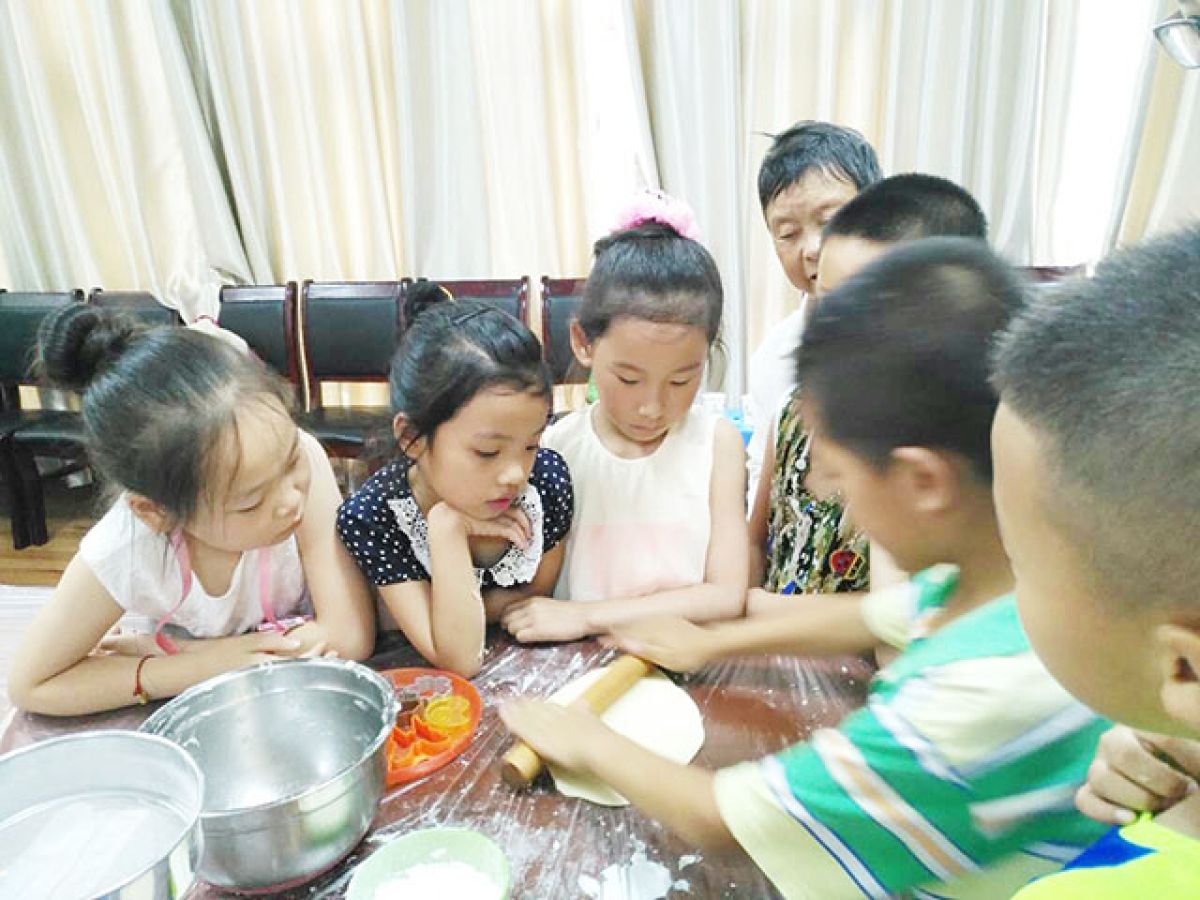 课堂上,孩子们从认识烘焙工具、称量材料、和面、擀面、压模具、烘烤都是在我们的老师指导下由自己动手完成的。香甜的饼干制作不仅让孩子们得到了亲手制作的香甜的饼干,同时也让他们学习生活技能,增加动手能力,增强他们的自信心,培养了他们的团结意识。