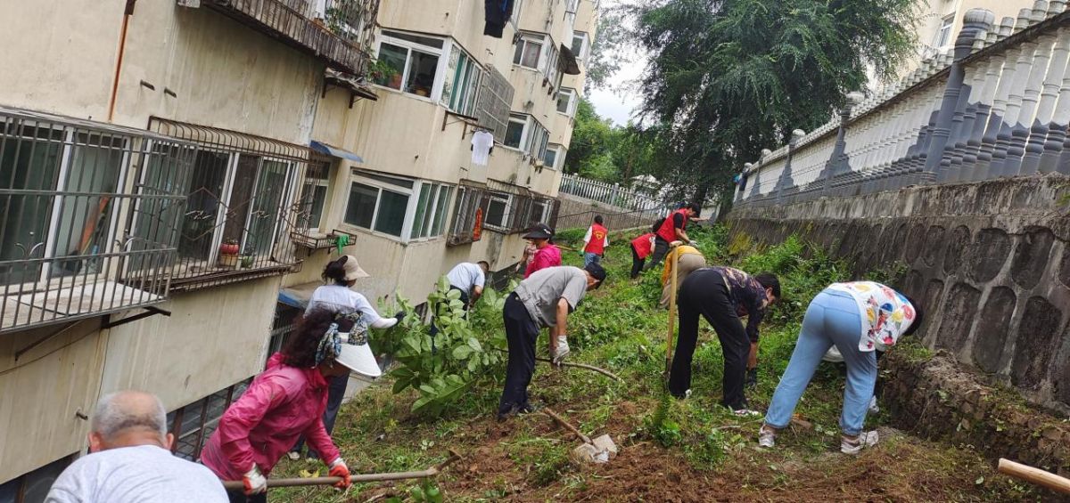 志愿者们在社区工作人员的带领下,分布在辖区内,带着手套,拿着耙子、铁锨等各种工具,开始清理小区杂草。首先清理了山水园小区19号楼及21号楼、22号楼周围的杂草,又将小区内花坛、坡地中的杂草等进行了细致的清理。