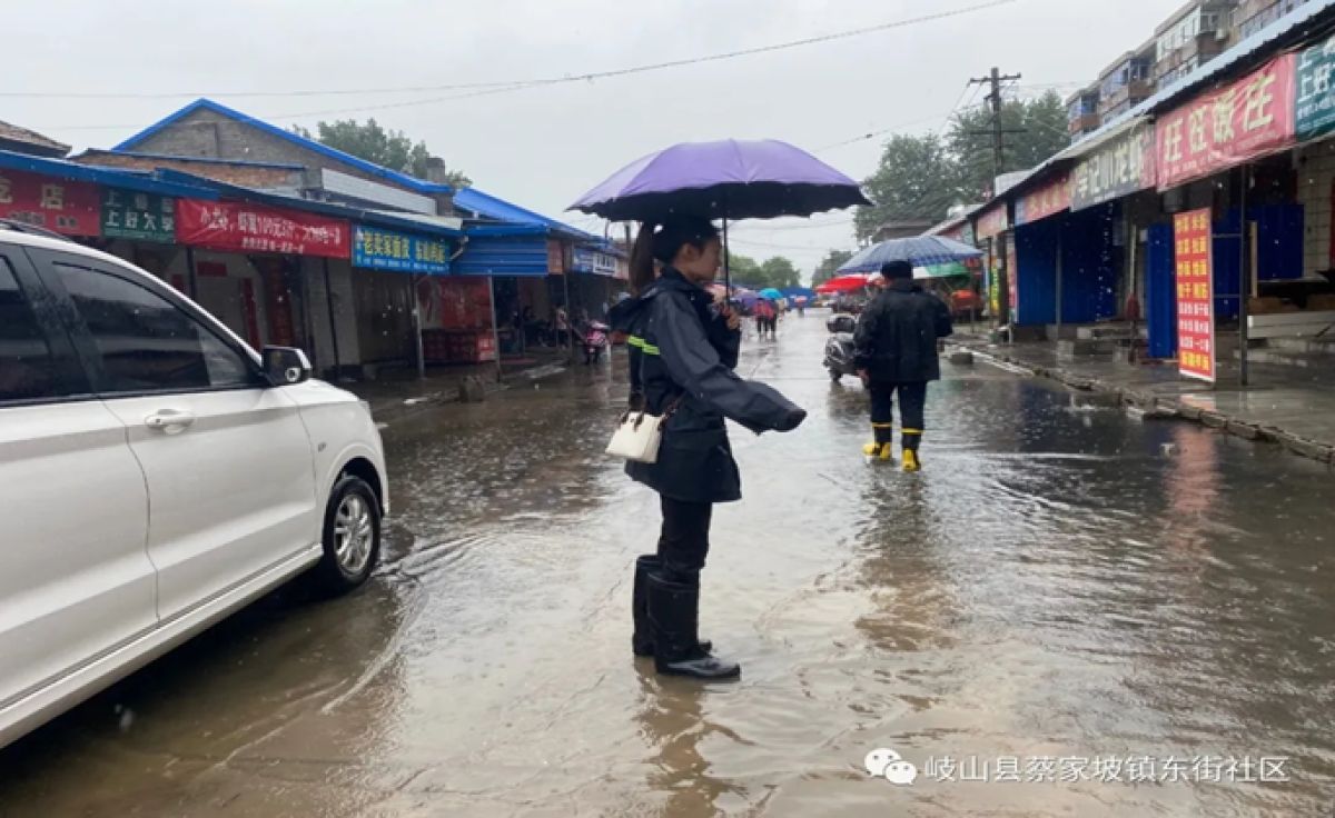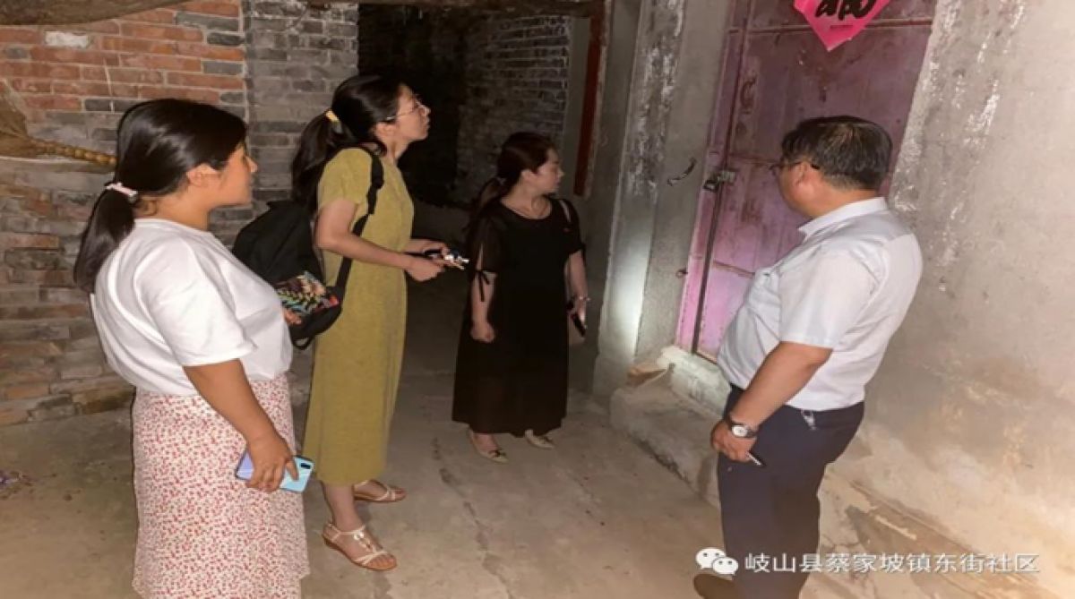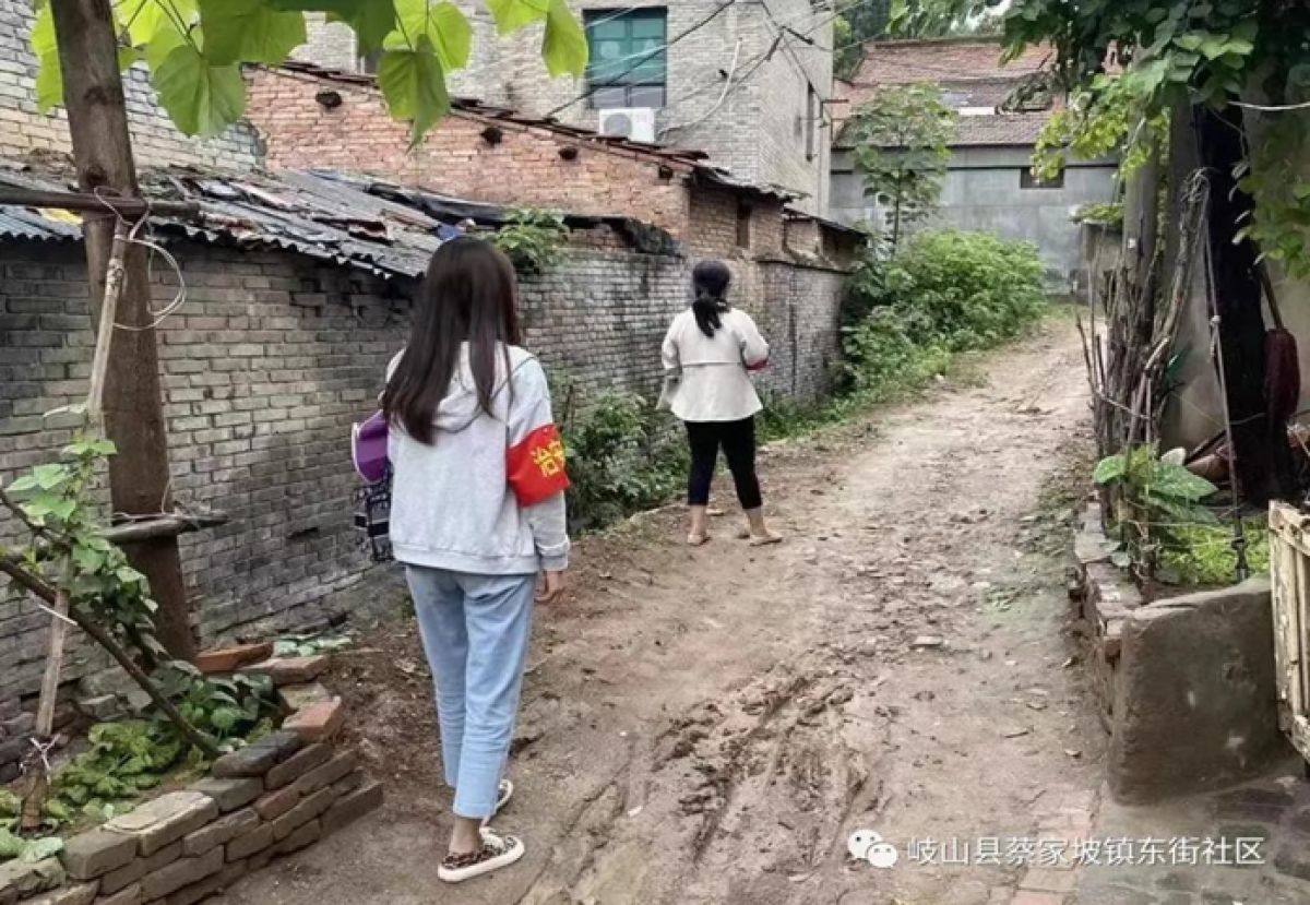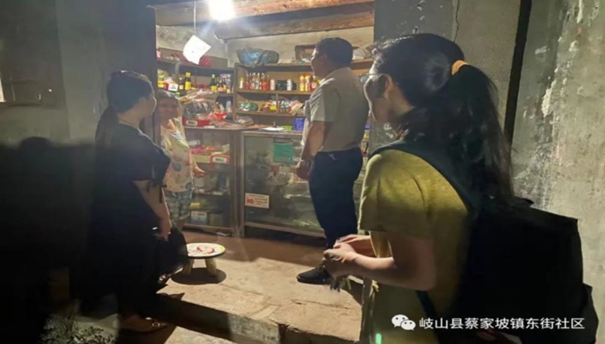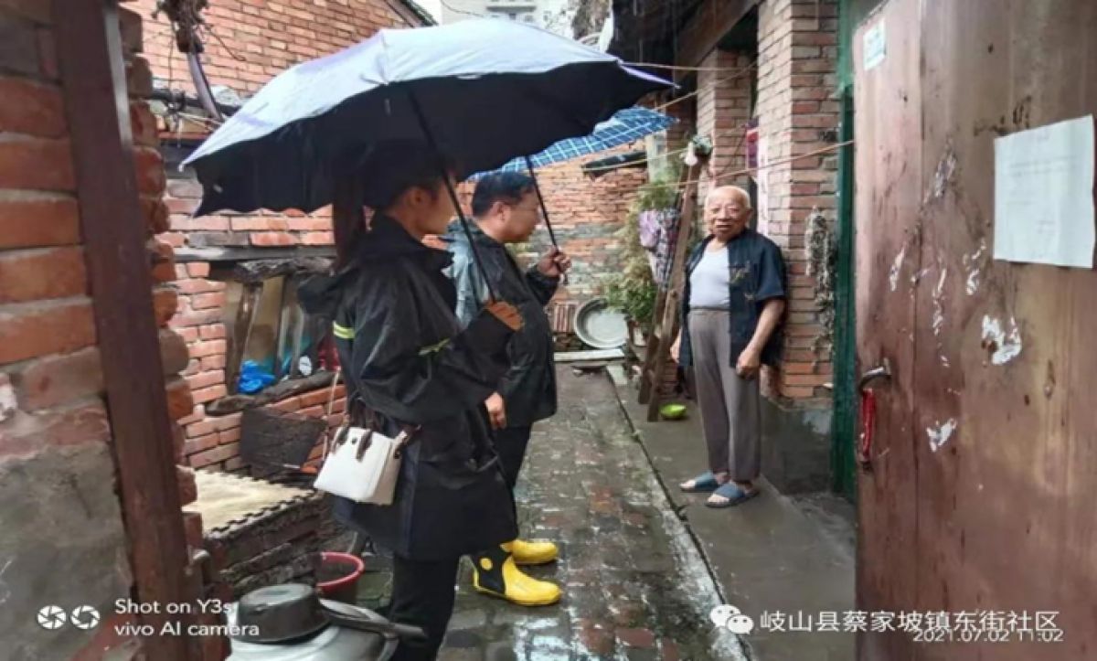 社区工作人员在汛情期间对排水设施、老旧房屋、易涝点等进行排查