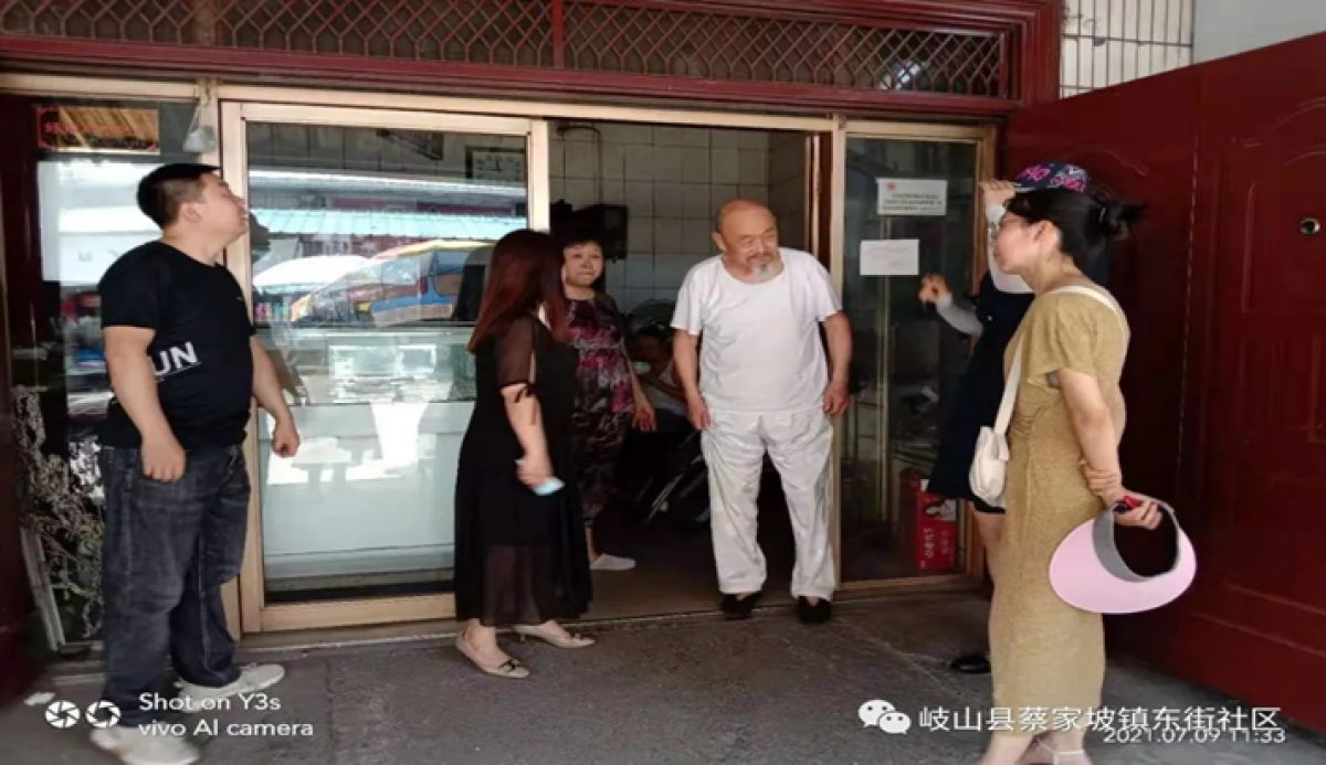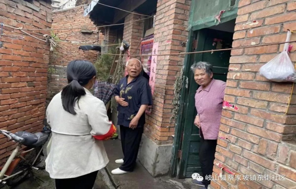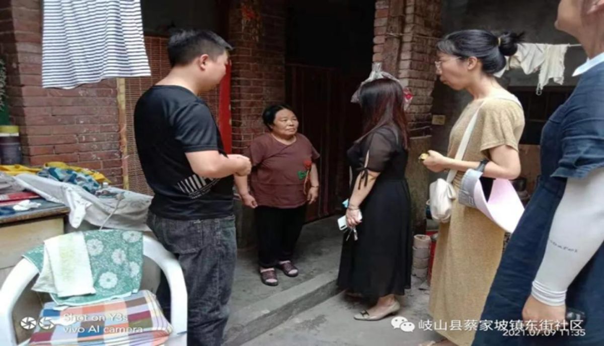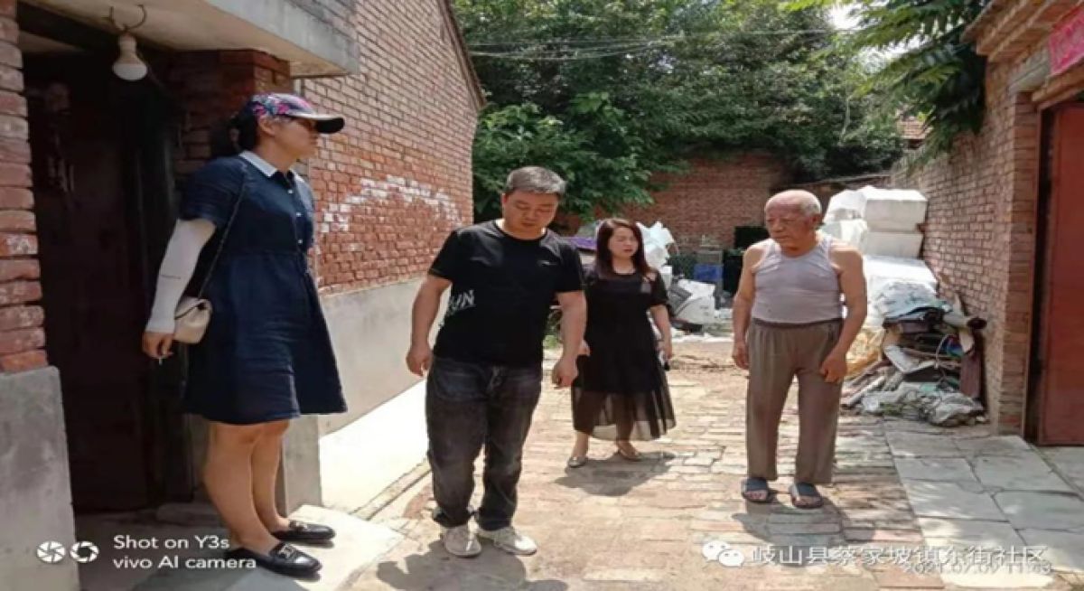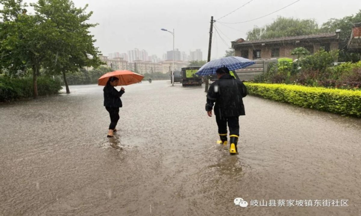 社区工作人员在汛情期间对排水设施、老旧房屋、易涝点等进行排查