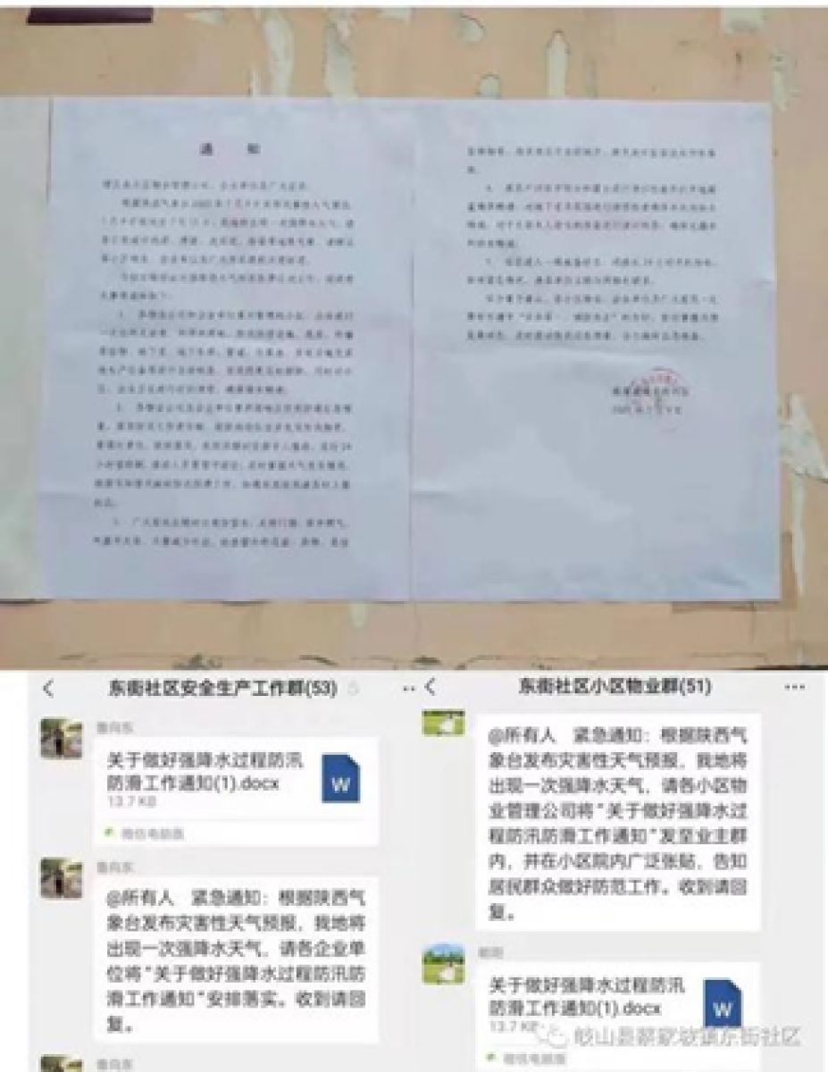 包社区干部和社区张书记带领工作人员前往防滑点进行人员疏散。