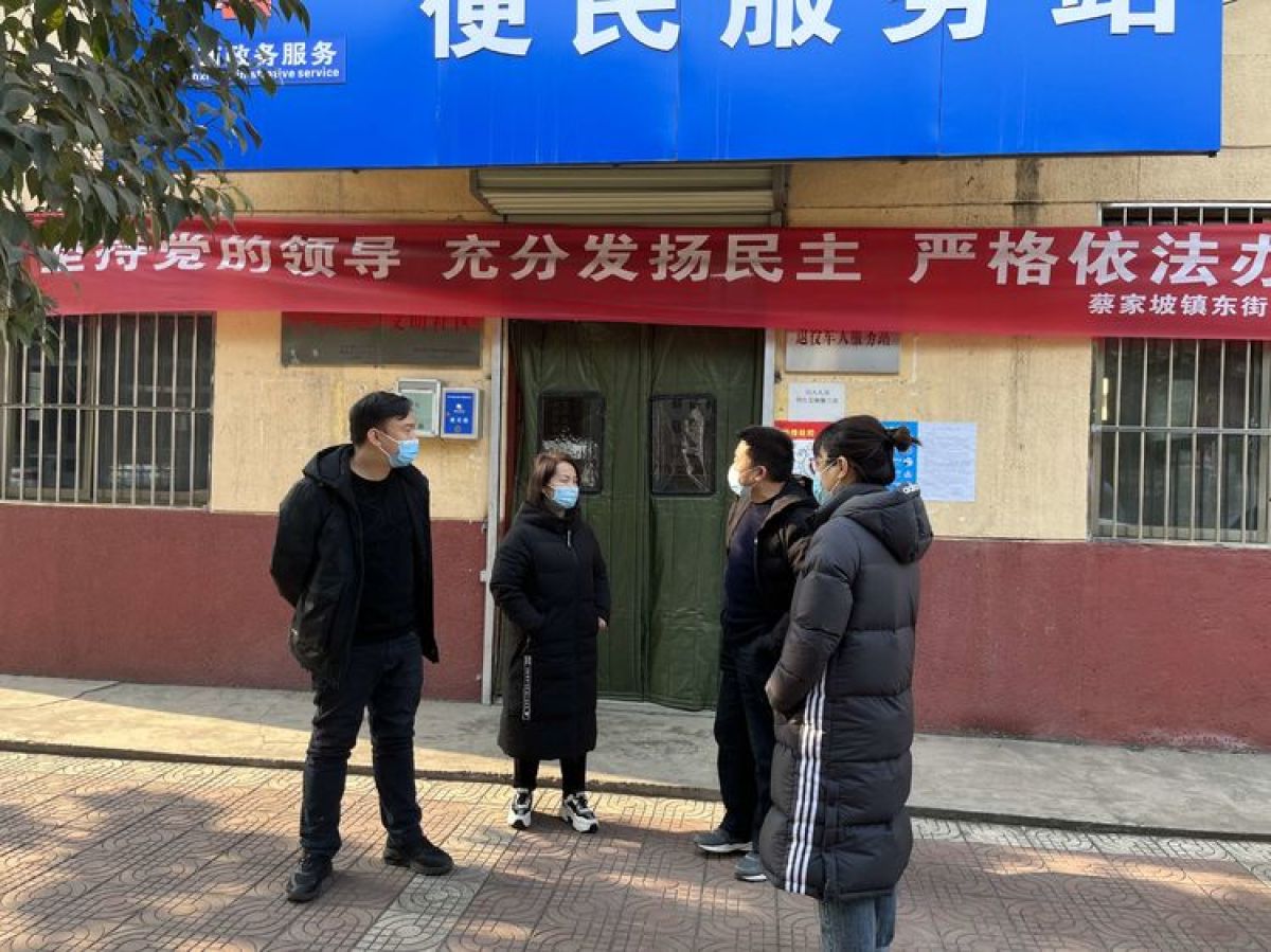 县人社局王局长、范局长、蔡家坡镇党委副书记彭智欣检查指导疫情防控工作。
