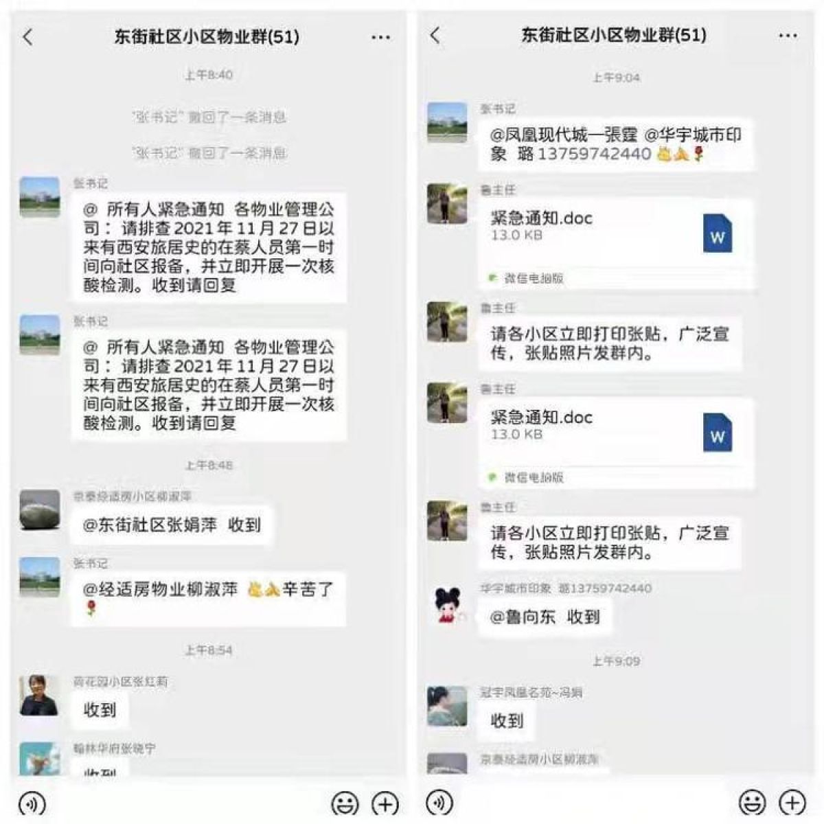 12月22日晚连夜出动,严防死守因西安封城返回人员进入小区,确保居民群众健康安全。