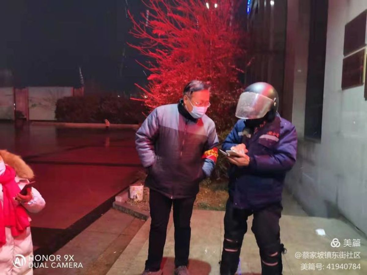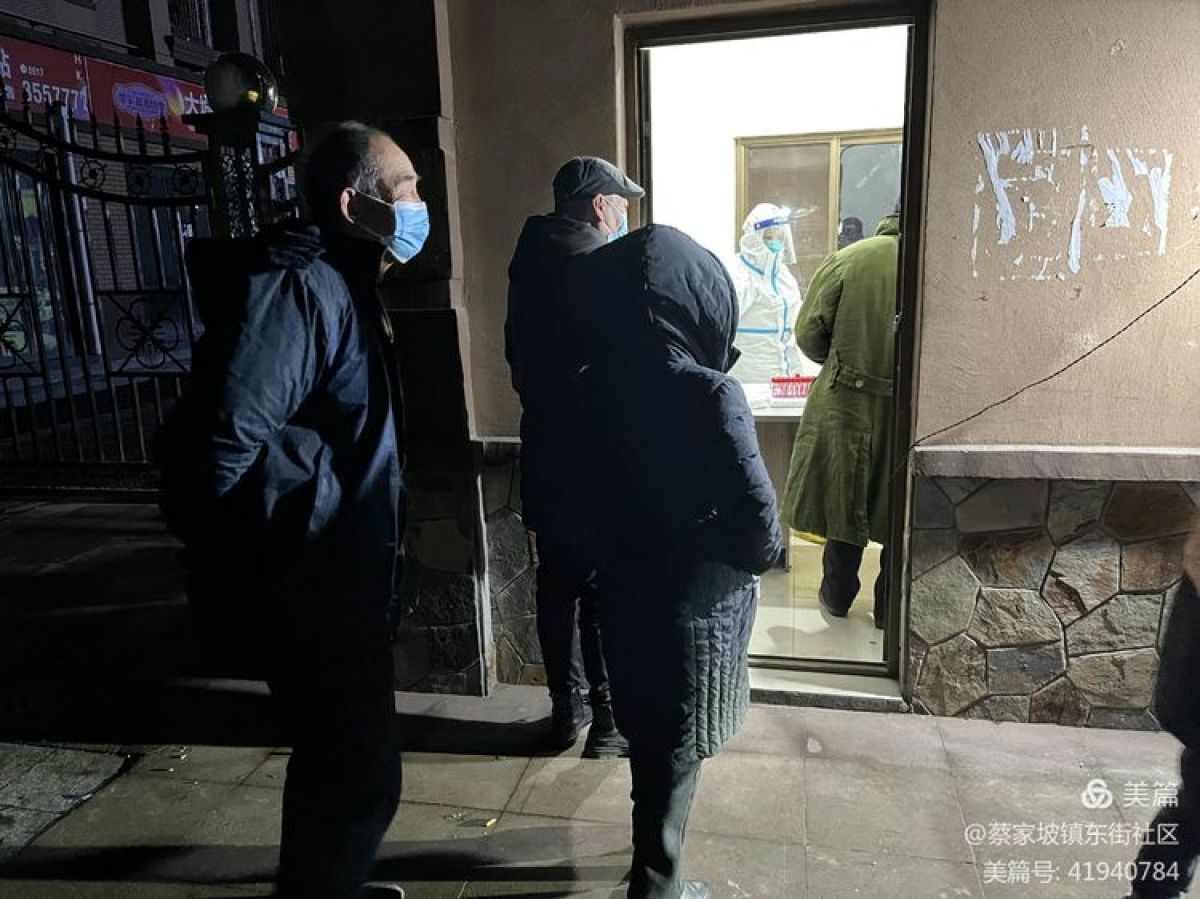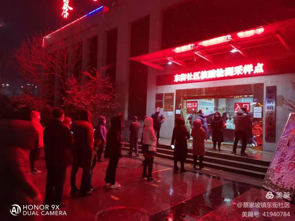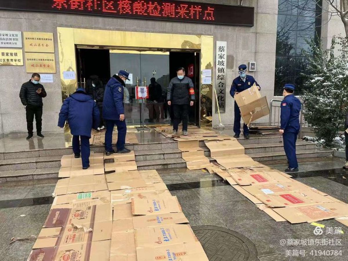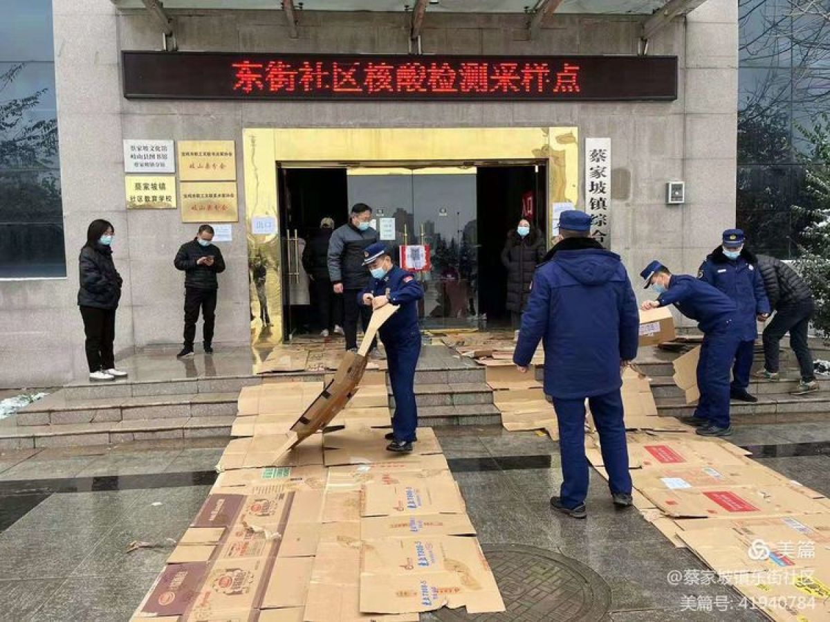 大雪纷飞中,社区工作人员耐心指引居民进行信息注册,确保核酸采样有序进行。