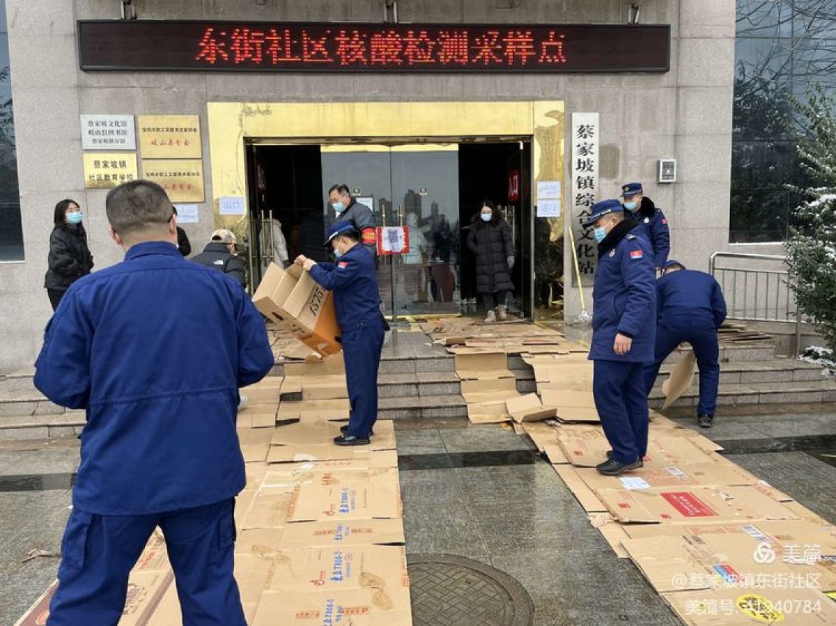 感谢消防大队为我们送来纸箱,社区工作人员与“蓝朋友”共同为群众铺设“安全通道”。