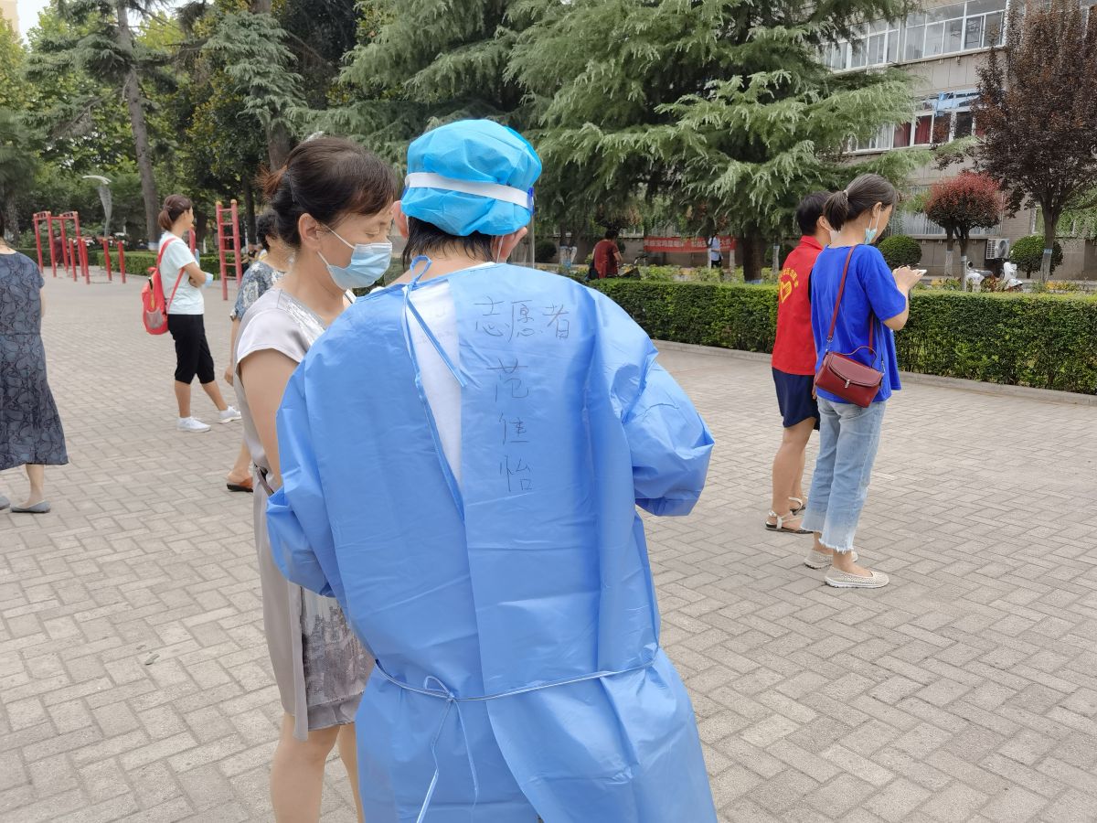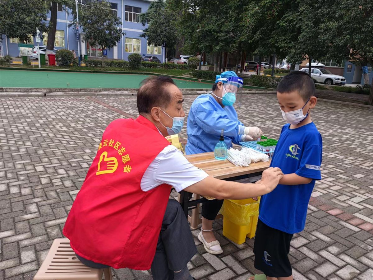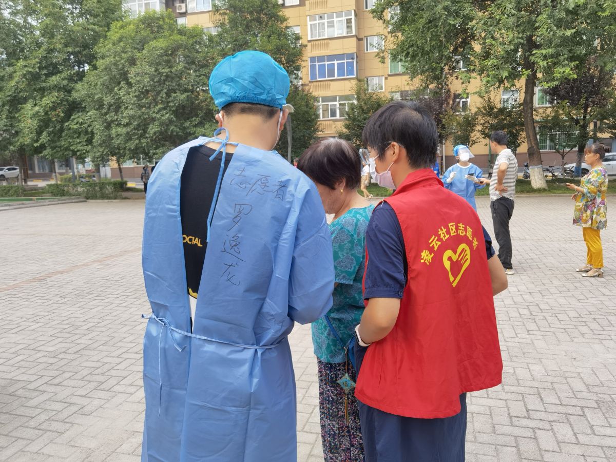 2022年8月,宝鸡突发疫情,社区按照上级安排在辖区进行了一次次、一轮轮全员核酸采样检测。接到通知后,辖区志愿者闻讯而动,积极报名,有居民志愿者、党员志愿者、大学生志愿者、中学生志愿者,文明单位包抓社区志愿者、市级单位干部下沉社区的志愿者,共计300余人。他们和她们,起早贪黑,有的做核酸采样,有的在扫码,有的在发帖,有的在维护秩序,有的耐心细致教居民打开自己电子码,默默无闻,努力工作,为保护家园,守护好居民的生命安全和健康做出了自己应有的贡献。
