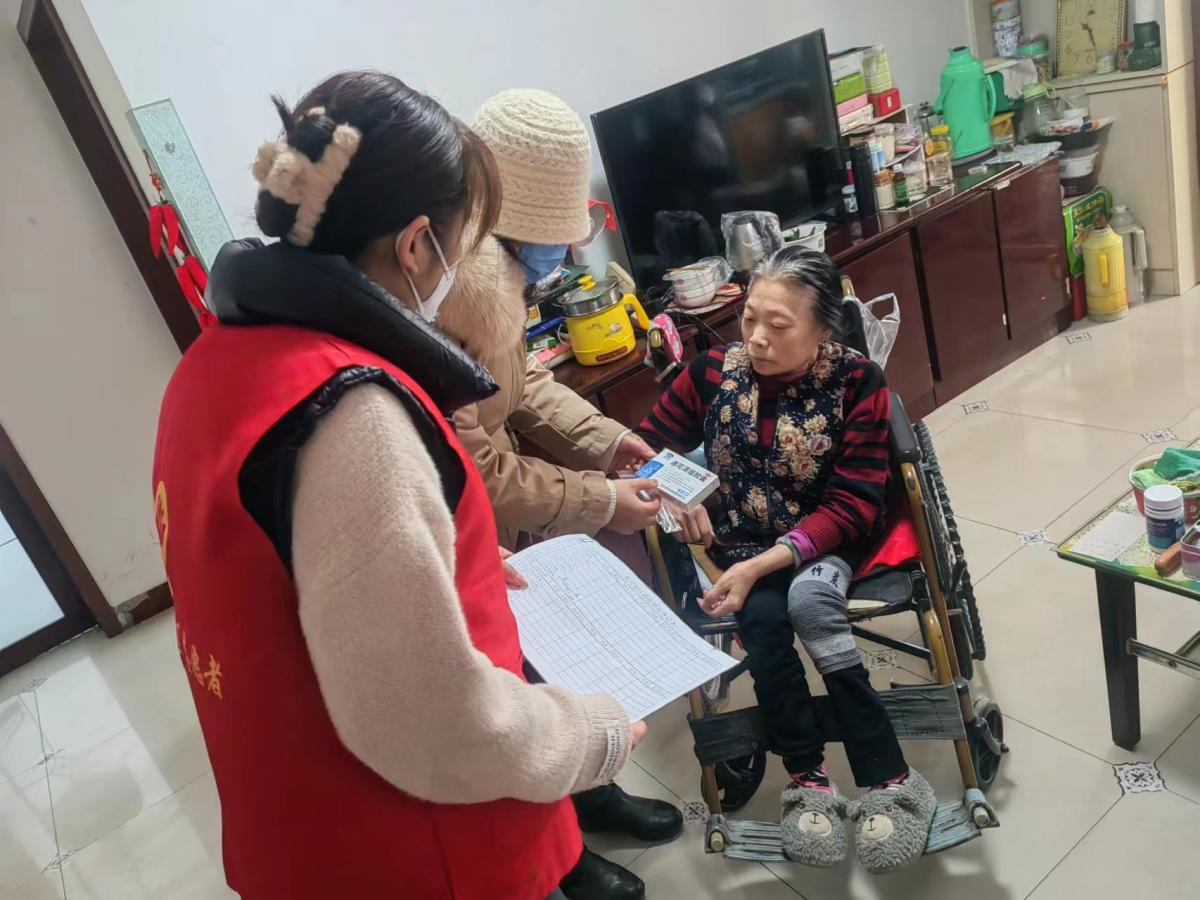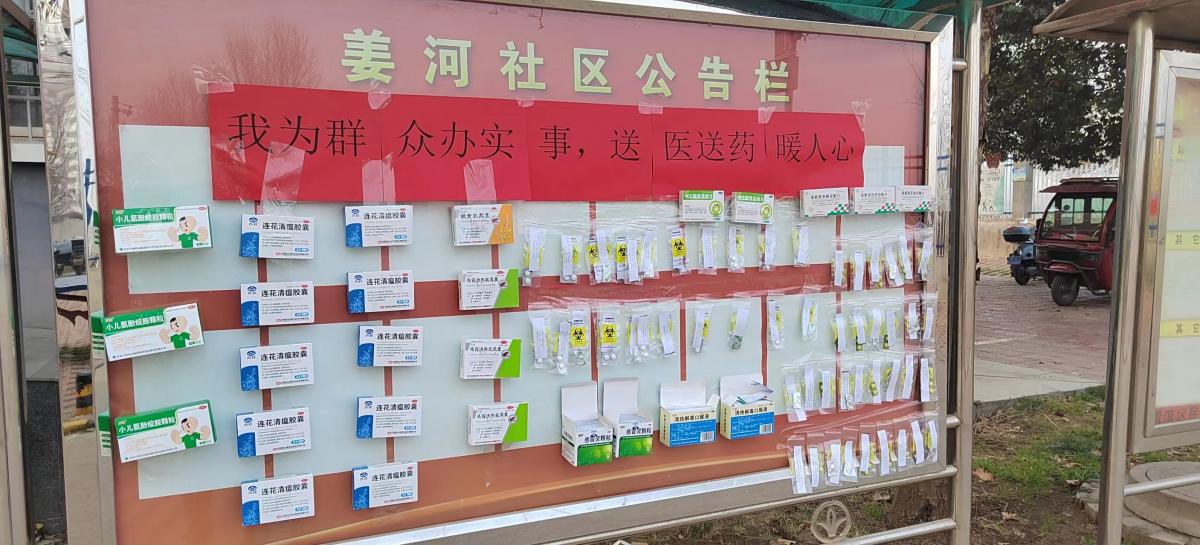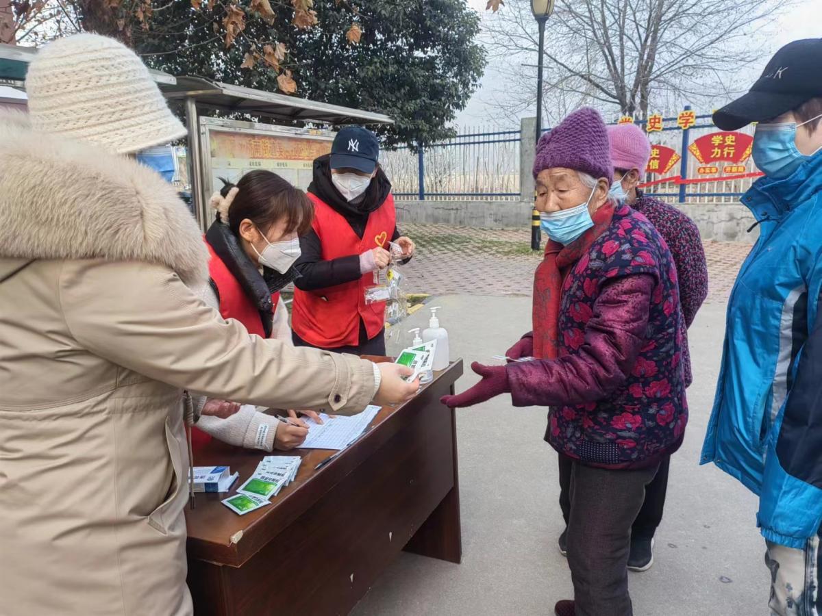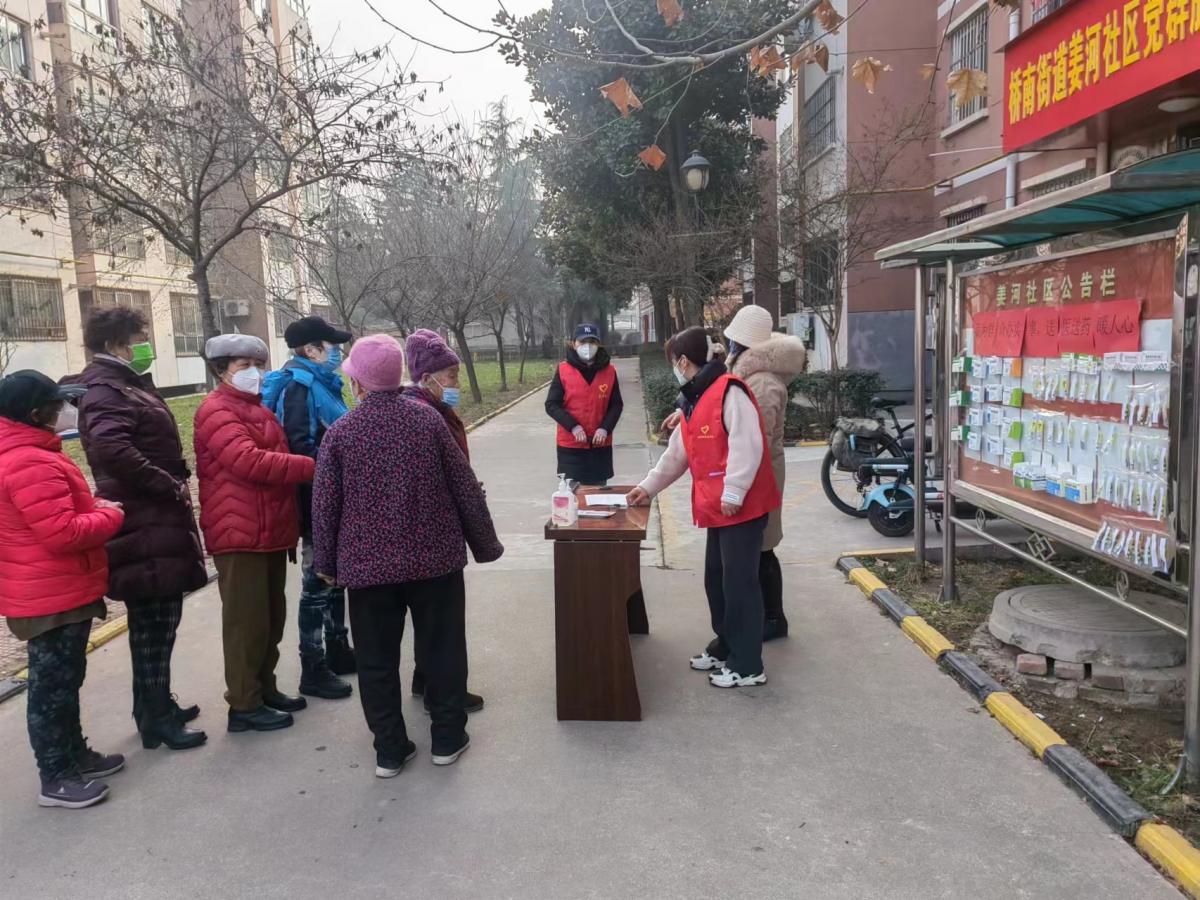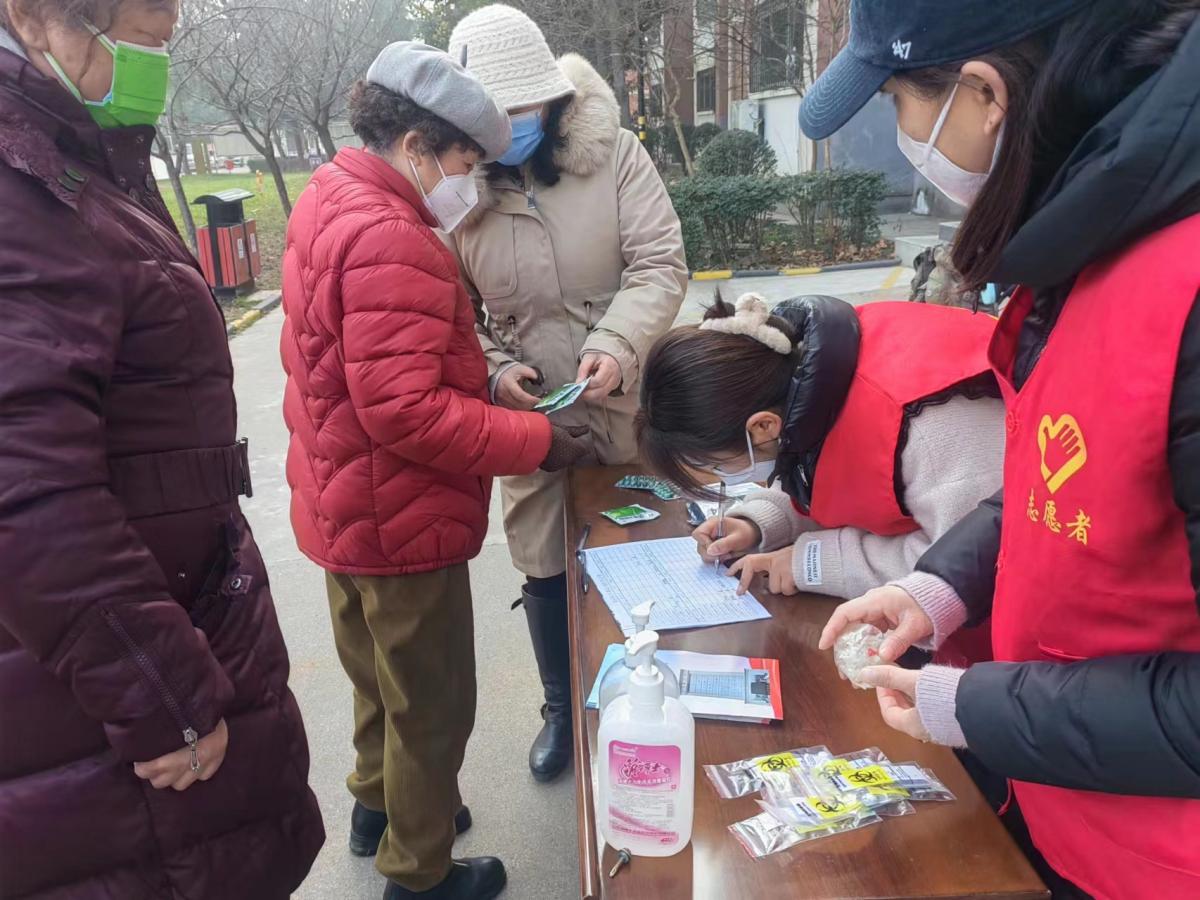 1月5日上午,社区在门前公告栏处设置了退热药品免费发放点,张贴醒目标志,并通过微信群进行宣传通知。活动现场,社区工作人员引导前来领药的老年人有序排队,在工作人员填写好详细个人信息后,免费定量为期发放爱心义赠药品。针对高龄老人以及残疾老人,社区工作人员送药上门,让老人足不出户就有药可用。