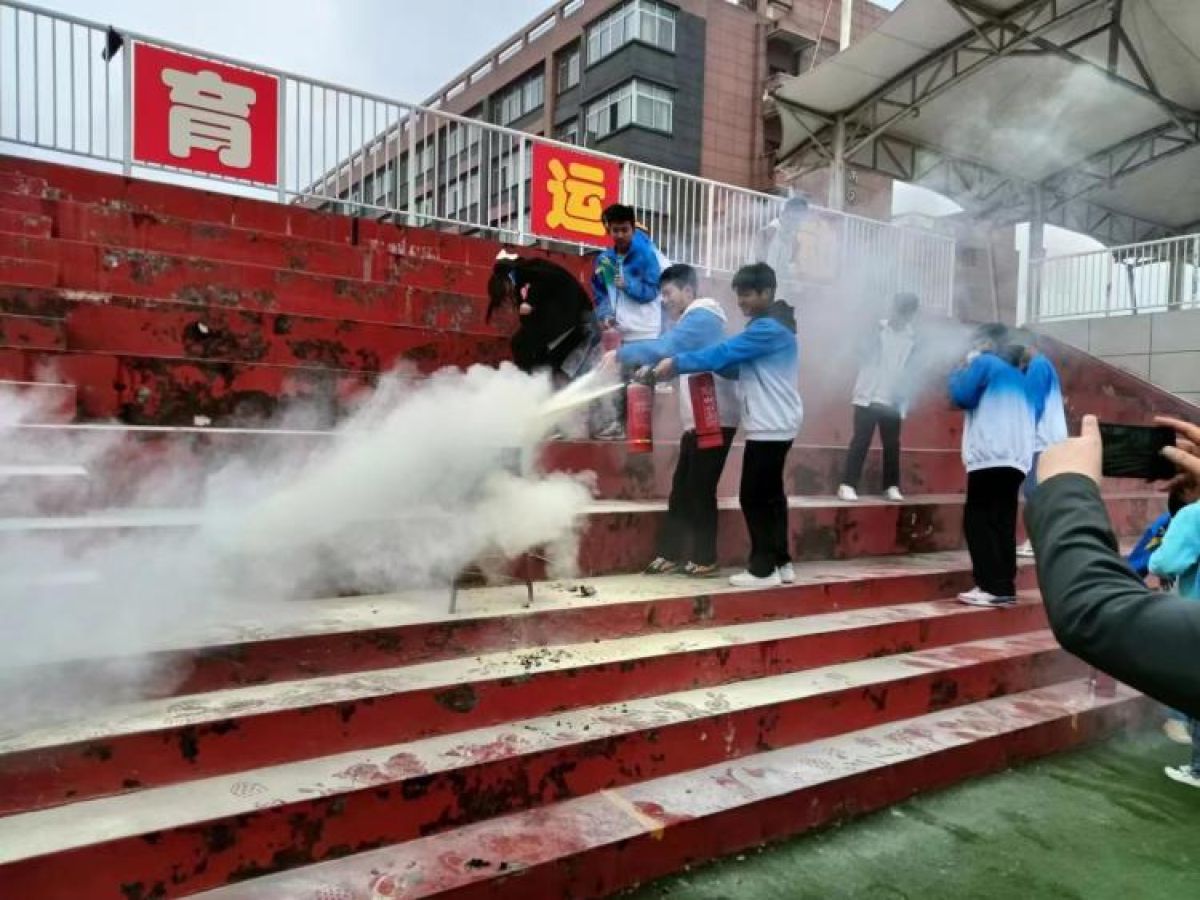 吴参谋通过案例分析、安全常识等方面向大家普及了地震来临时的应对、自救方法、常见的火灾发生原因、防火措施、应急疏散、自救逃生技能等一系列防灾减灾安全知识,并现场演示消防器材的正确使用方法,引导广大师生养成良好消防安全习惯。