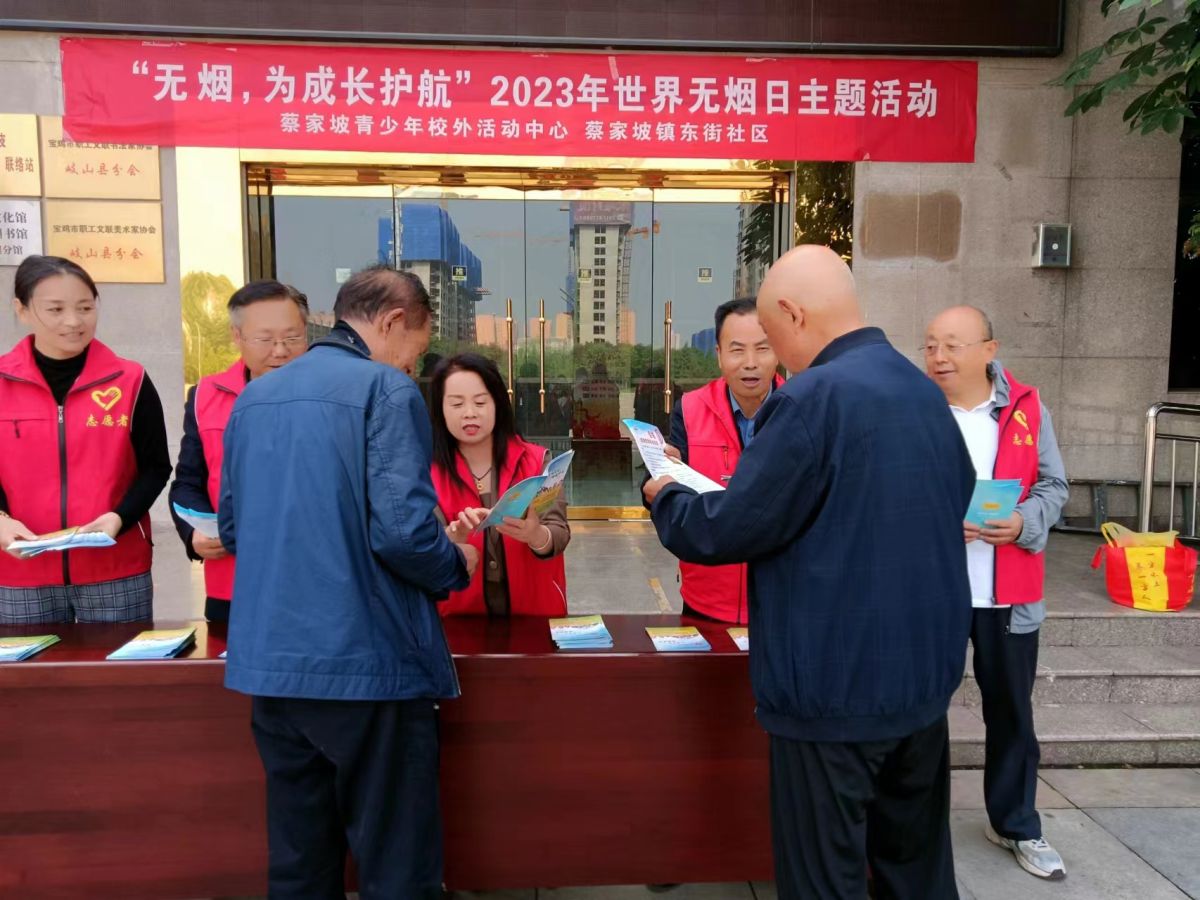 为引导辖区居民自觉树立控烟意识,养成良好的健康生活方式,5月30日上午蔡家坡镇东街社区联合结对共建单位蔡家坡青少年校外活动中心开展“无烟,为成长护航”2023年世界无烟日主题活动。