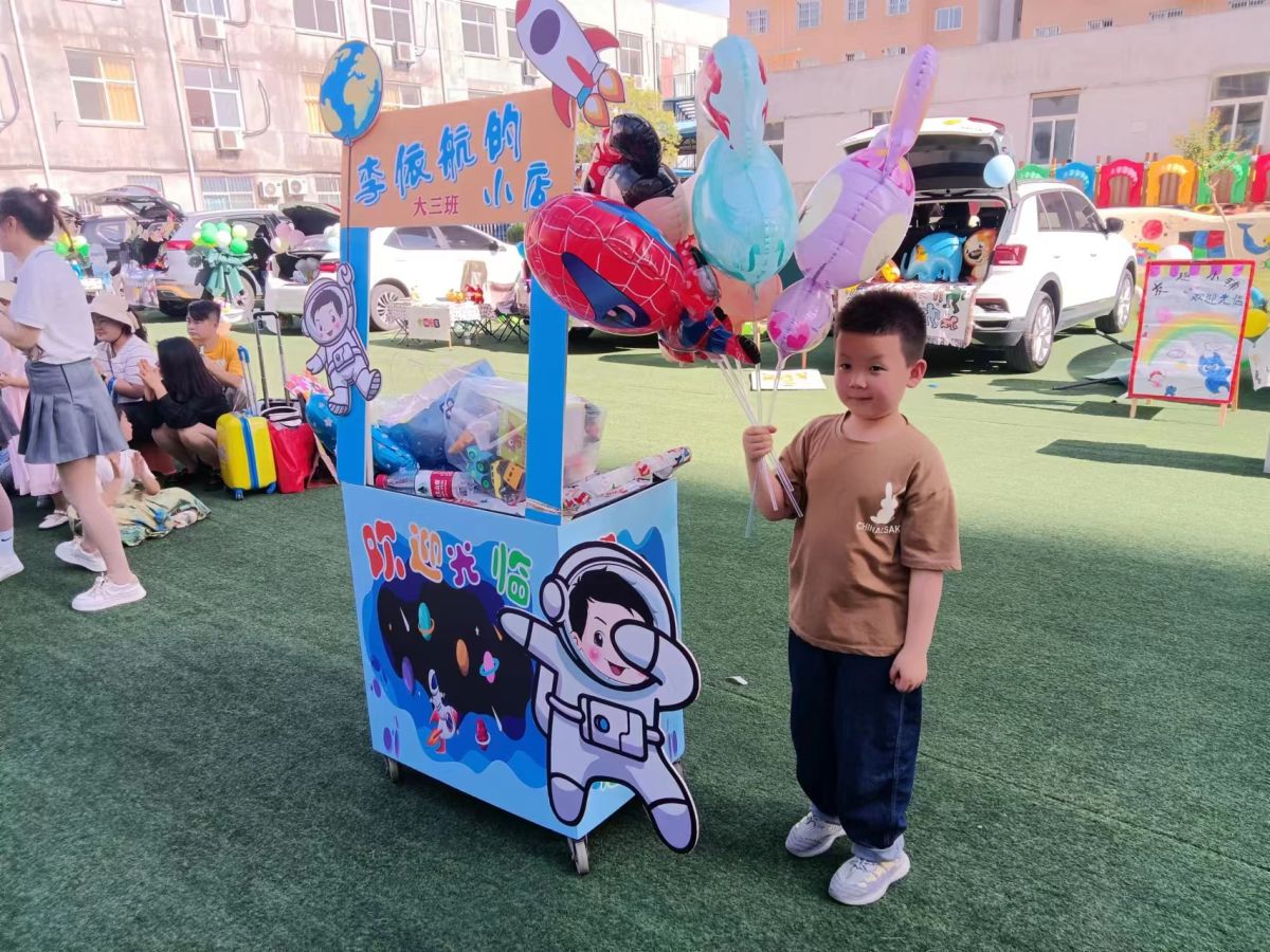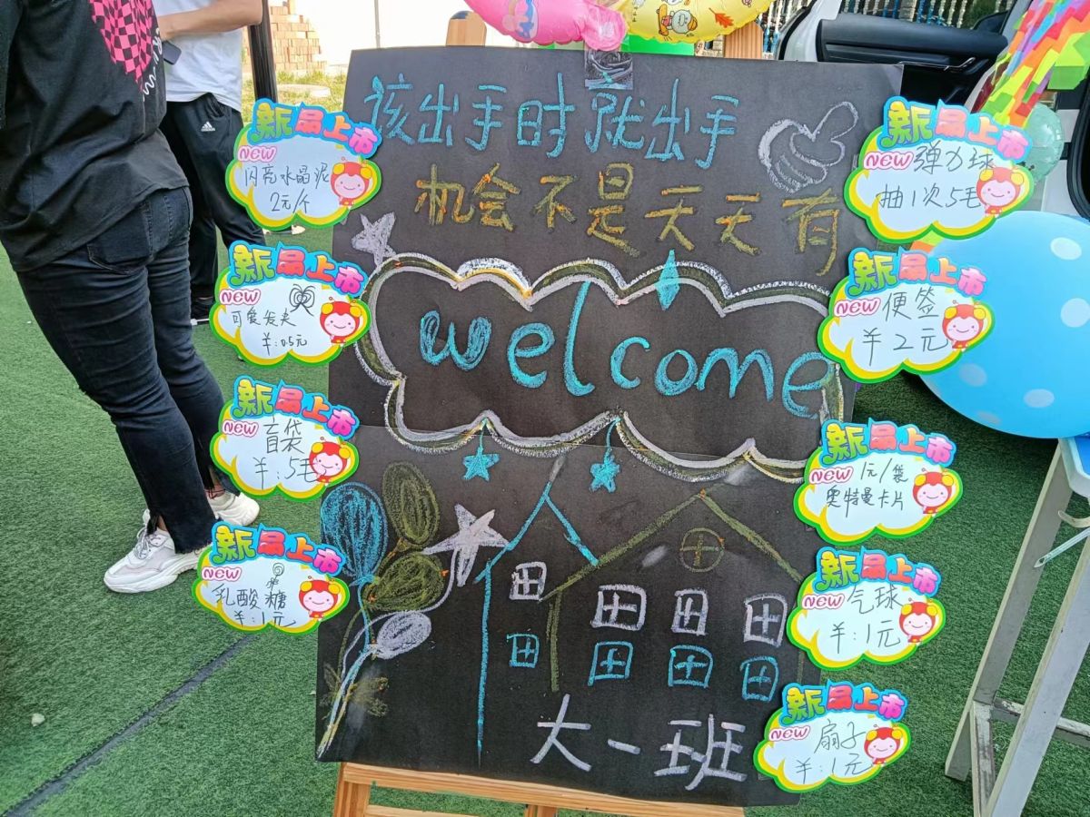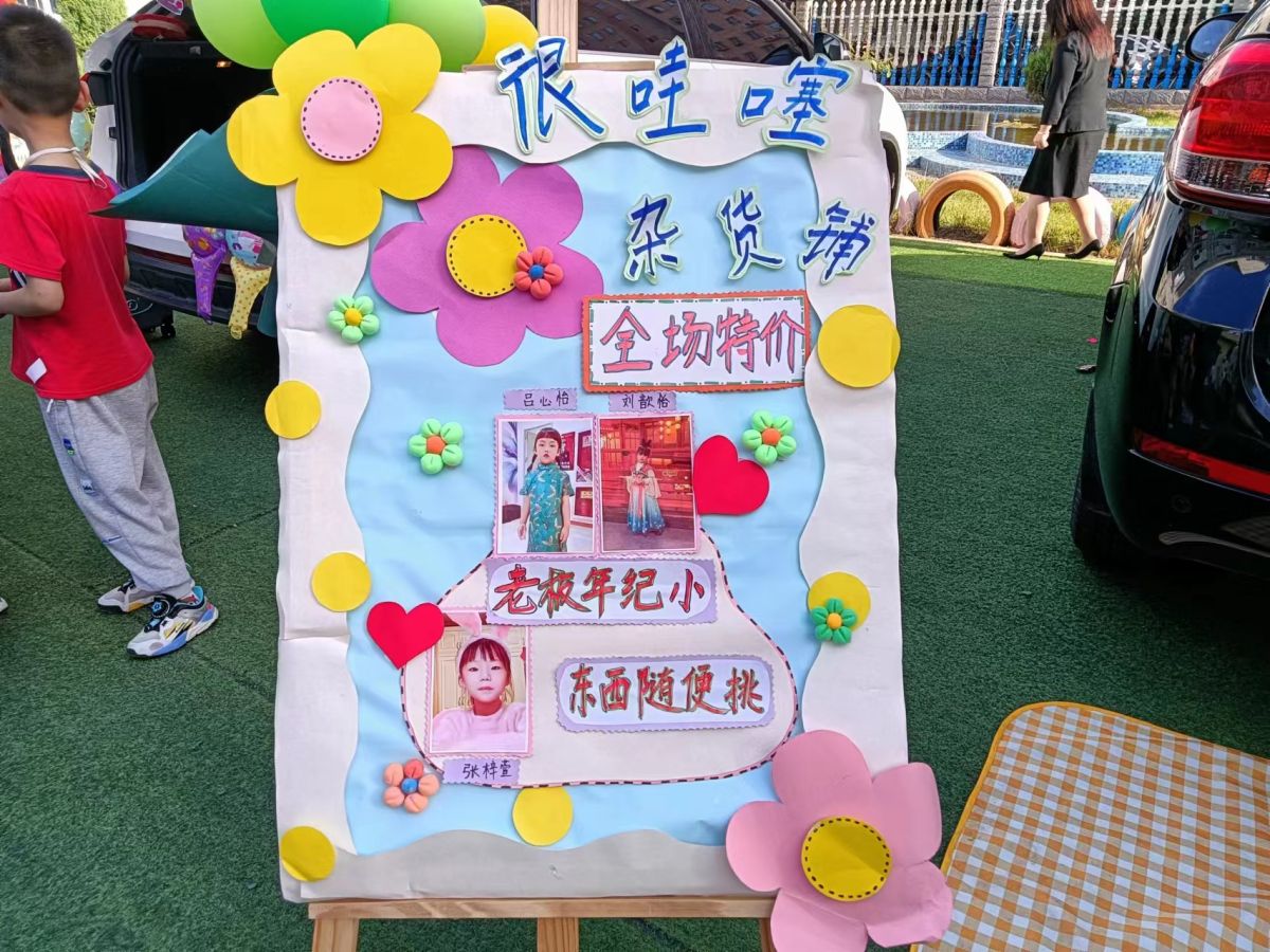 “跳蚤”集市上,大班的孩子们用自己制作的招牌和装饰贴纸,搭起了自己的“摊位”,搭好摊位、摆好“商品”,集市就这样火热地拉开了序幕。