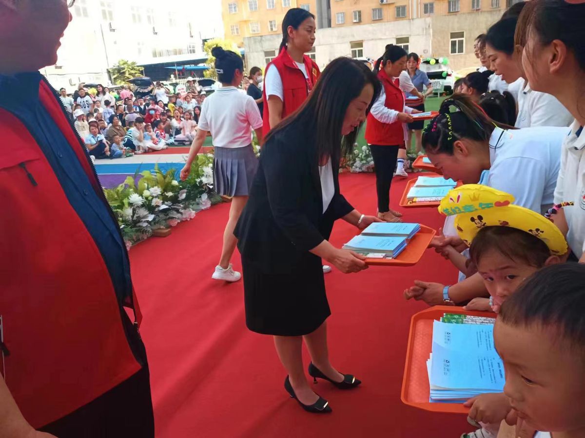 爱心捐赠活动在充满爱和感动的氛围中进行,东街社区为全园小朋友爱心捐赠学习用品,将关心关爱传递给全体小朋友。