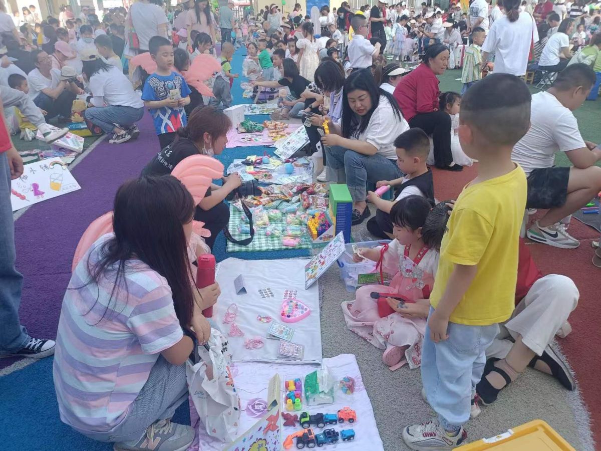 “摊位”上物品丰富,种类繁多,身为“小老板”的孩子们坐在自己的摊位前,纷纷扮演起小老板的角色招揽“生意”,耐心为前来光顾的小顾客服务。孩子们的叫卖声、讨价还价声、欢乐的笑声不绝于耳。一件件物品,从一个孩子手里“跳”到另一个孩子手里,孩子们都沉浸其中,享受着淘宝、交换和分享的乐趣。