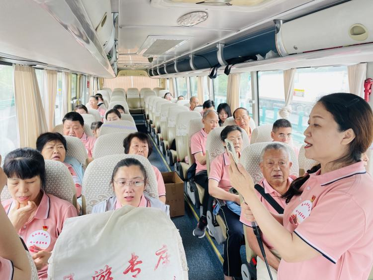 早上7点30分出发虽早,但大巴车里满是红似烈火的革命热情,一路上,党员同志带头唱响铿锵有力的红歌,同志们更是情到深处一起合唱:“没有共产党就没有新中国!”