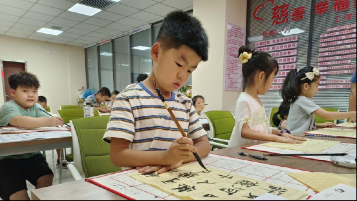 兴趣班由6节书法课、5节美术课、3节手工课、1节安全培训课和一次外出研学组成,社区邀请专业的老师为孩子们开展培训,从最简单、最基础的内容入手,让孩子们对课程内容有一个初步的了解,逐步培养兴趣。孩子们都对老师讲的内容表现出了强烈的兴趣,而老师也对孩子们提出的天马行空的问题一一解答。