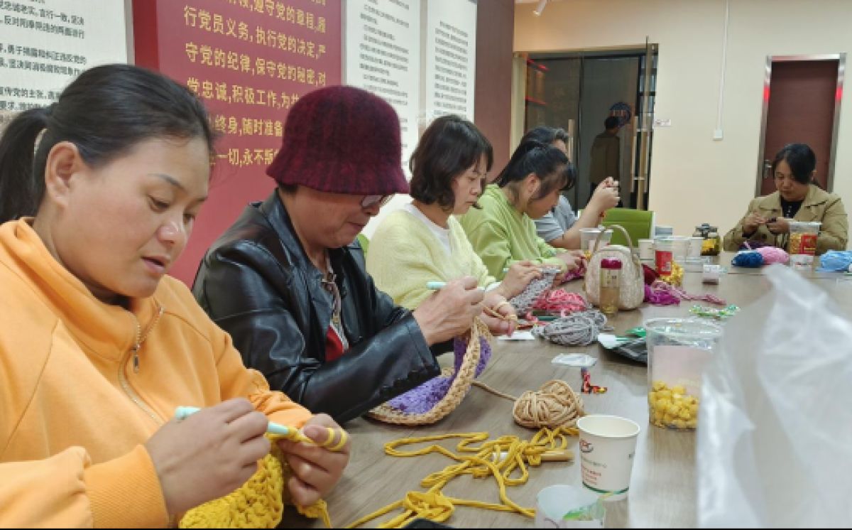 社区组织居民在社区活动室开展“情暖金秋 爱在重阳”主题茶话会,大家一起看重阳节敬老视频,听重阳节传统故事,宣传敬老爱老精神。最后,大家跟随手工老师一起学习布条线坐垫的制作方法。大家用心领会、认真学习,仔细地看着老师每一步的动作与手法,大家边学边织,很快就编制出了各具特色的坐垫。
