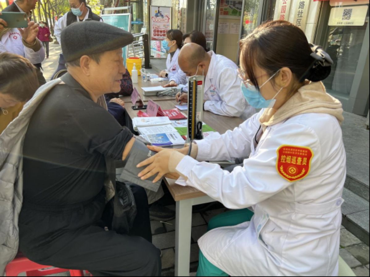 社区联合社区卫生服务站开展健康义诊活动。活动现场,医生为每一位前来咨询就诊的社区老人开展问诊查体、免费量血压、测血脂、测血糖等服务,根据老人身体状况给予健康指导。