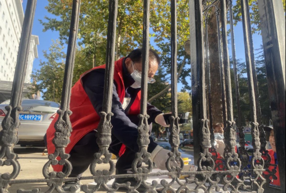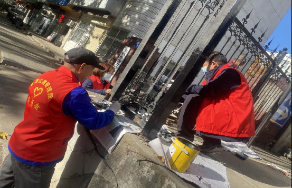 以学促干践行推动主题教育走深走实 —公园路社区开展护栏“旧貌”换“新颜”活动