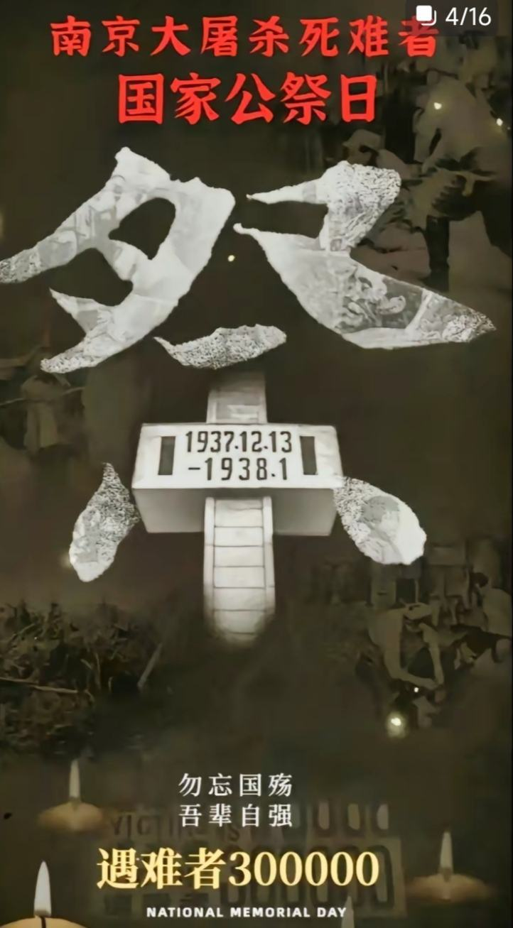 今天这个特别的日子是每个中国人都不能忘记的日子,国家公祭日,勿忘国耻,铭记历史,爱我中华,吾辈自强。牢记历史,不敢忘,也不能忘。