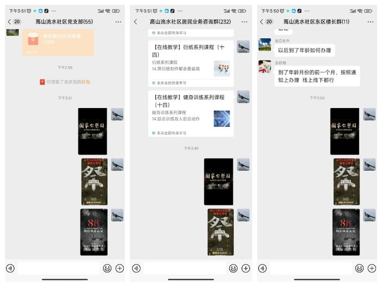 2023年12月13日,高山流水社区开展了国家公祭日纪念活动。社区通过电子屏,朋友圈,楼栋群等形式广泛宣传,希望大家铭记历史, 不忘国耻,珍惜幸福生活。