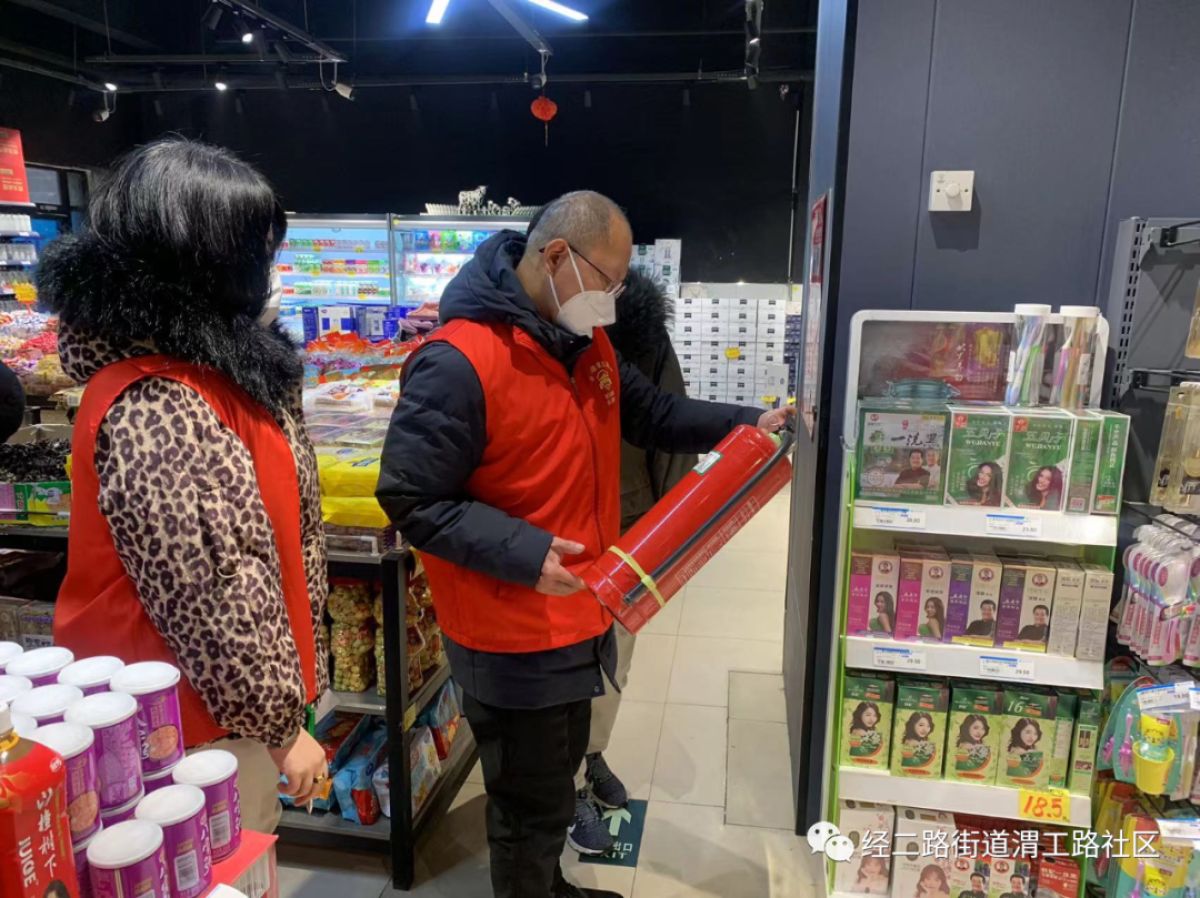 冬季天干物燥,为安全事故的高发期,为了让大家平安过节,在元旦假期来临之际,渭工路社区党委书记李志强和安全专干深入辖区超市、摊档、社卫站、门店、网吧等人员密集场所进行节前安全检查,用温馨的话语提醒他们注意用火用电用气安全,“师傅,你们这个灭火器干粉失效了要及时换粉啊”,“李阿姨,咱家灭火器快过期了,要记得及时更换啊,安全放在第一位呀”“李师傅,作为餐饮店,咱一定要注意用气用火,没人的时候一定要切断火源电源,可不敢麻痹大意”。同时,安全专干与商户签订2024年安全责任书,并对不符合消防安全要求的商户下发督办单,督促他们按期整改,及时消除安全隐患。