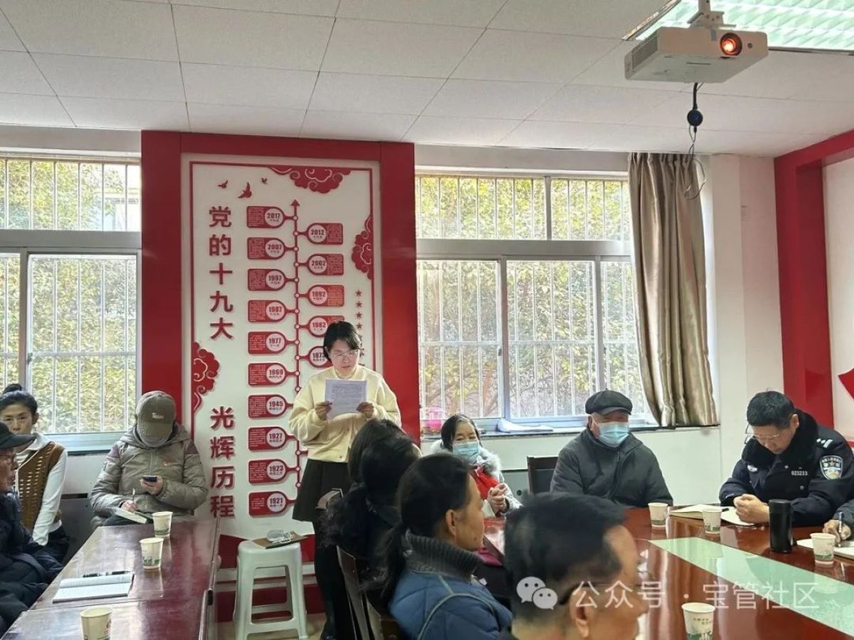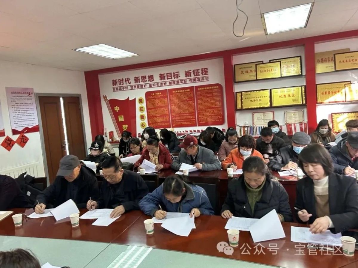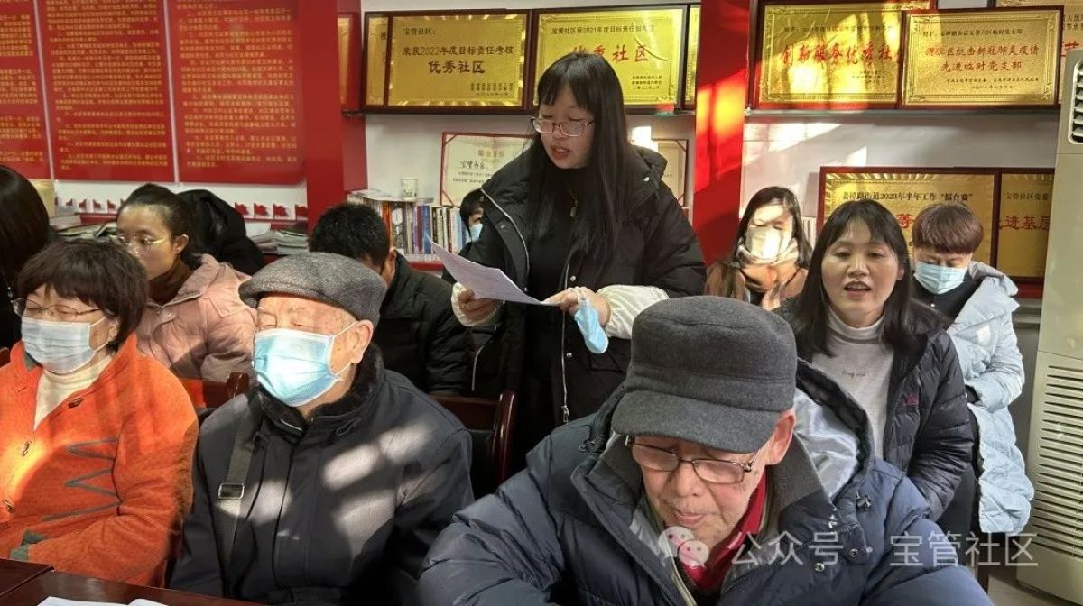 宝管社区党委书记、居委会主任张晓春代表班子从党建工作、民政服务、为民服务项目、社区特色亮点等方面,对社区一年来工作进行全面汇报,反思总结工作中存在的问题并提出整改目标,在2024年度充分发挥领头雁作用,带领社区全体工作人员砥砺前行,努力践行为民服务使命。