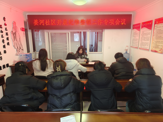 根据目前几期基层工作人员的典型案列,1月23日上午,姜河社区积极开展纪律整顿工作会议,社区党支部书记以“工作人员作风纪律整顿”为主题,对全体工作人员提出了高标准,严要求的整改,整治方案。
