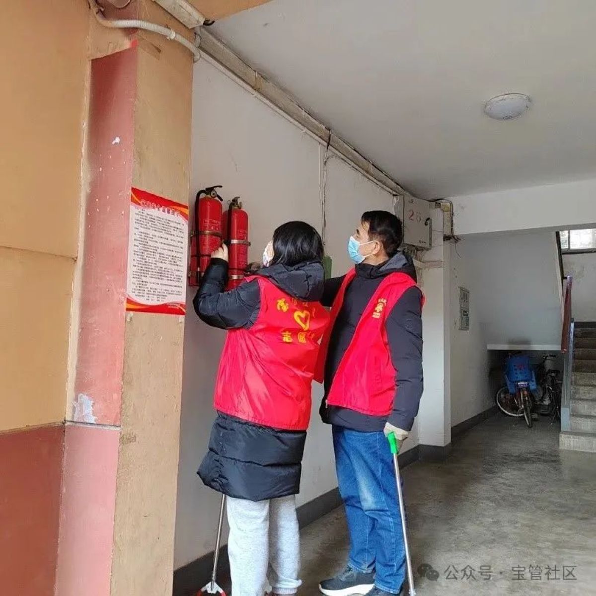 检查过程中,社区工作人员及志愿者重点对辖区商户及小区住宅楼的灭火器及消防栓进行安全排查,同时向商户和住户科普基本的消防知识,提醒其自检自查,并强调火源附近不可放置易燃可燃物品。