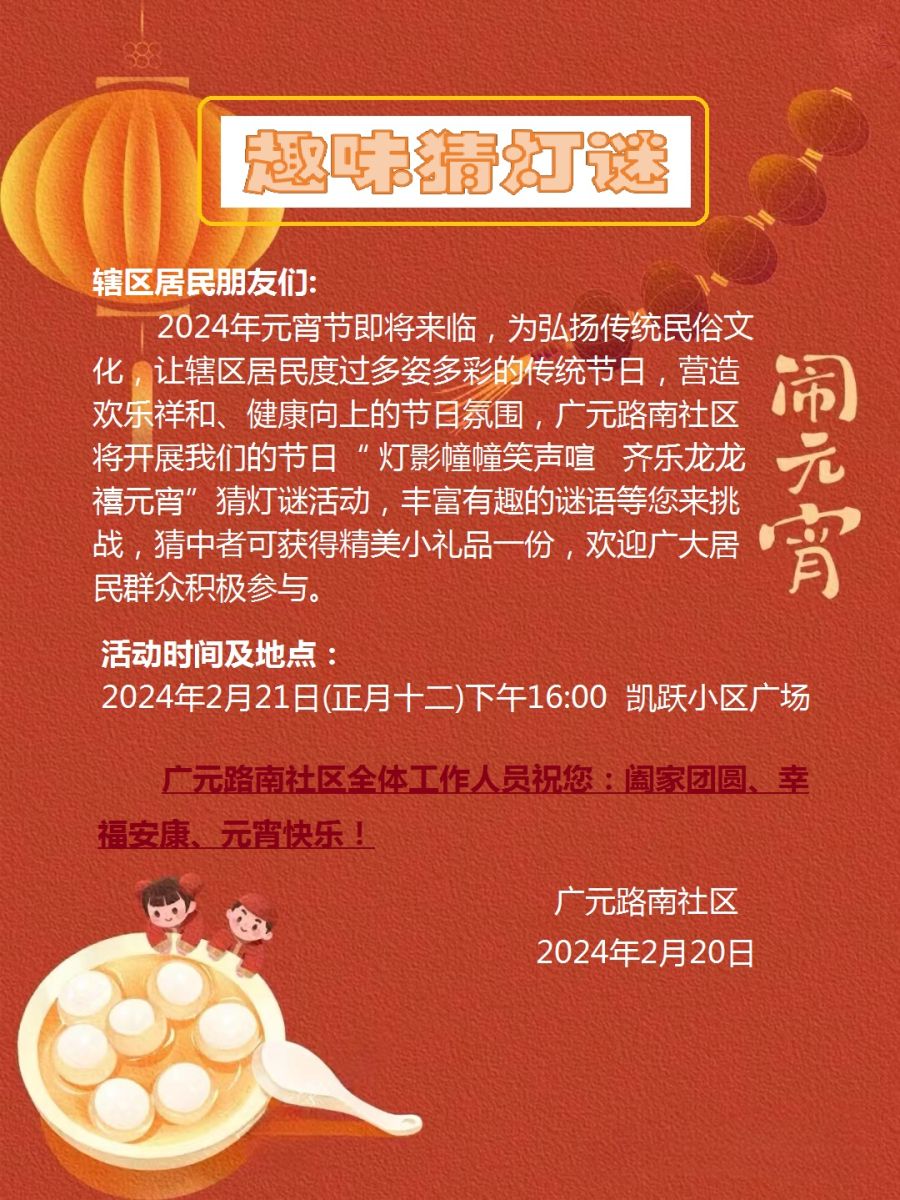 灯影幢幢笑声喧 齐乐龙龙禧元宵——社区邀您猜灯谜!