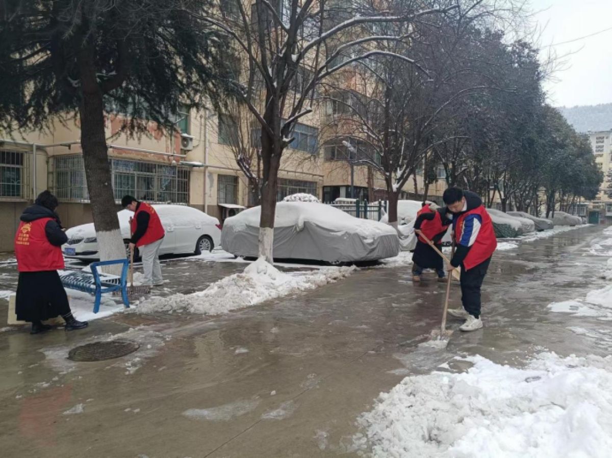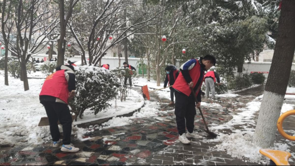 2月23日,宝成社区联合包抓单位区医保中心、区行政审批服务局、社区志愿者和新城宝物业公司开展周末‘益’起来铲雪除冰志愿服务活动。志愿者统一身着志愿马甲,手拿铲雪铲和扫帚,在宝成新苑小区清理路面冰雪。