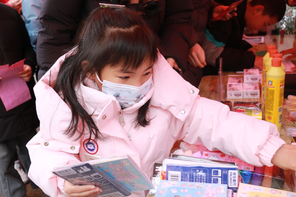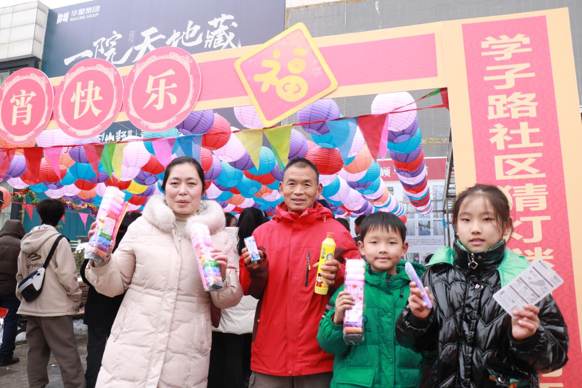 居民张女士带着10岁的儿子一起猜灯谜,小朋友很快猜出了其中一个,高兴地去兑换奖品。张女士说:“很愿意带孩子来参加社区活动,让孩子了解民俗以及其他知识,增长孩子的见识。”