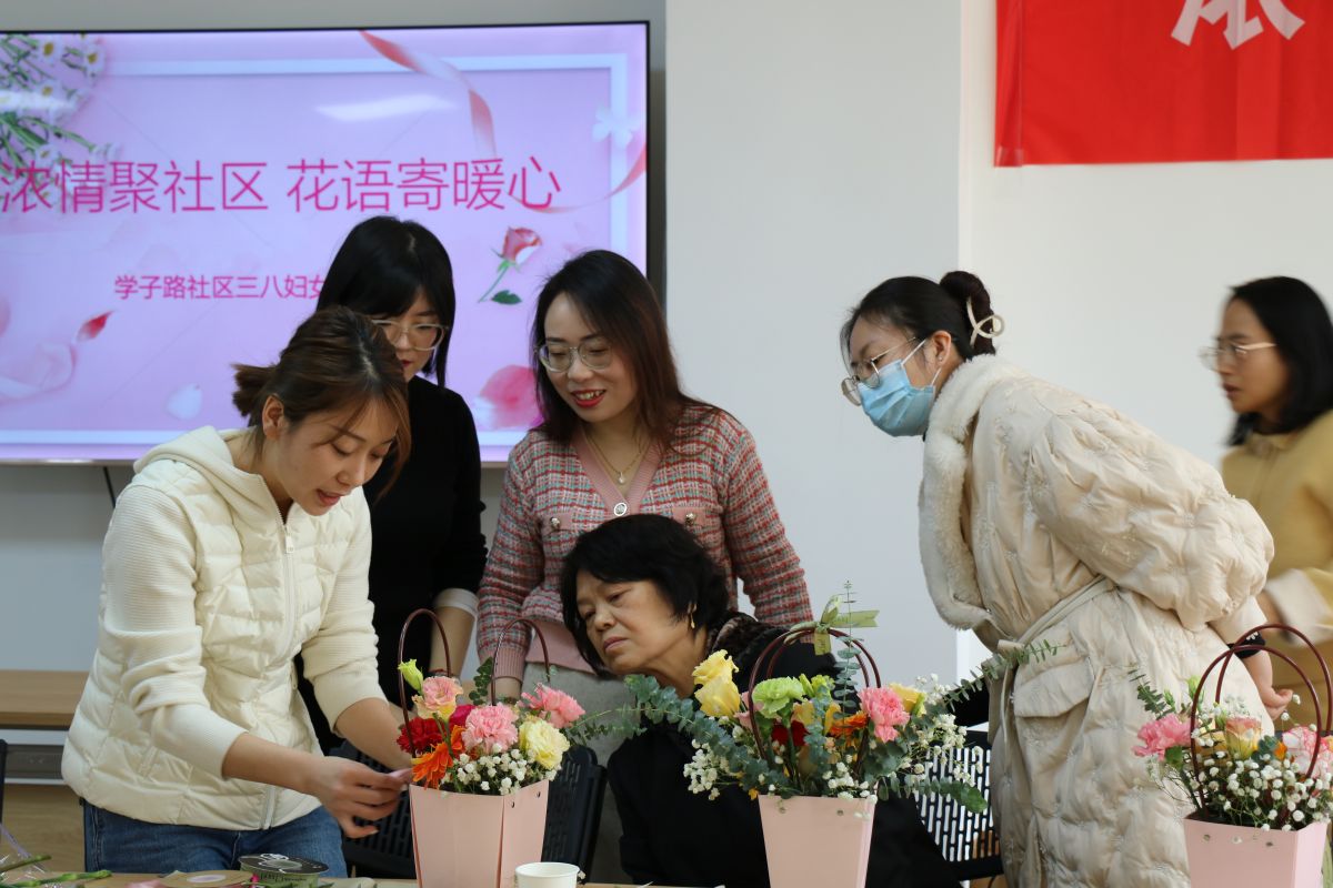 【美丽型社区】学子路社区开展 “浓情聚社区,花语寄暖心”妇女节活动