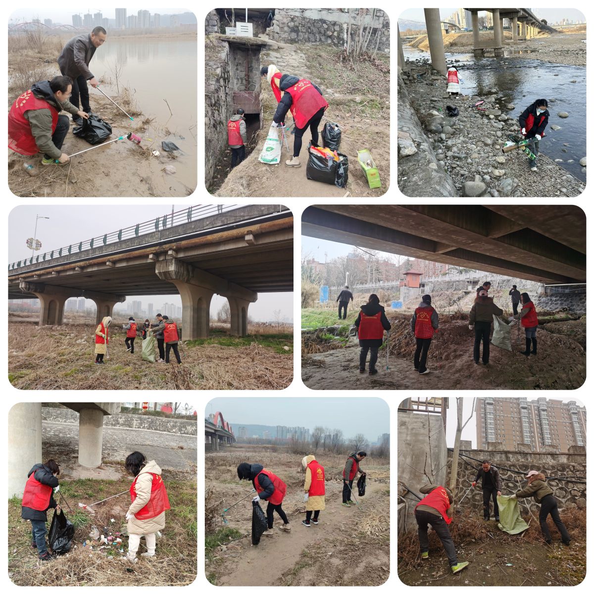 净化江河,恢复城市“生态网”。社区志愿者们将“绿水青山就是金山银山”理念化为守护渭河的实际行动,沿着清姜河入渭口向东至胜利桥西一路仔细搜寻,一抹抹红色身影活跃在河道的各个角落,一次次的弯腰捡拾着。河道内的塑料制品、生活垃圾等被逐一清理并将可回收物、有害垃圾和普通垃圾进行分类,然后统一收集运走。大家清除着眼前废弃物,在营造水清、岸绿、河畅、景美良好环境的同时倡导绿色生活方式和环保理念,引导着更多的居民参与到“守护生态平衡,助力地球减负”的行动中来,用“志愿红”守护“生态绿”,让河道重归清澈。
