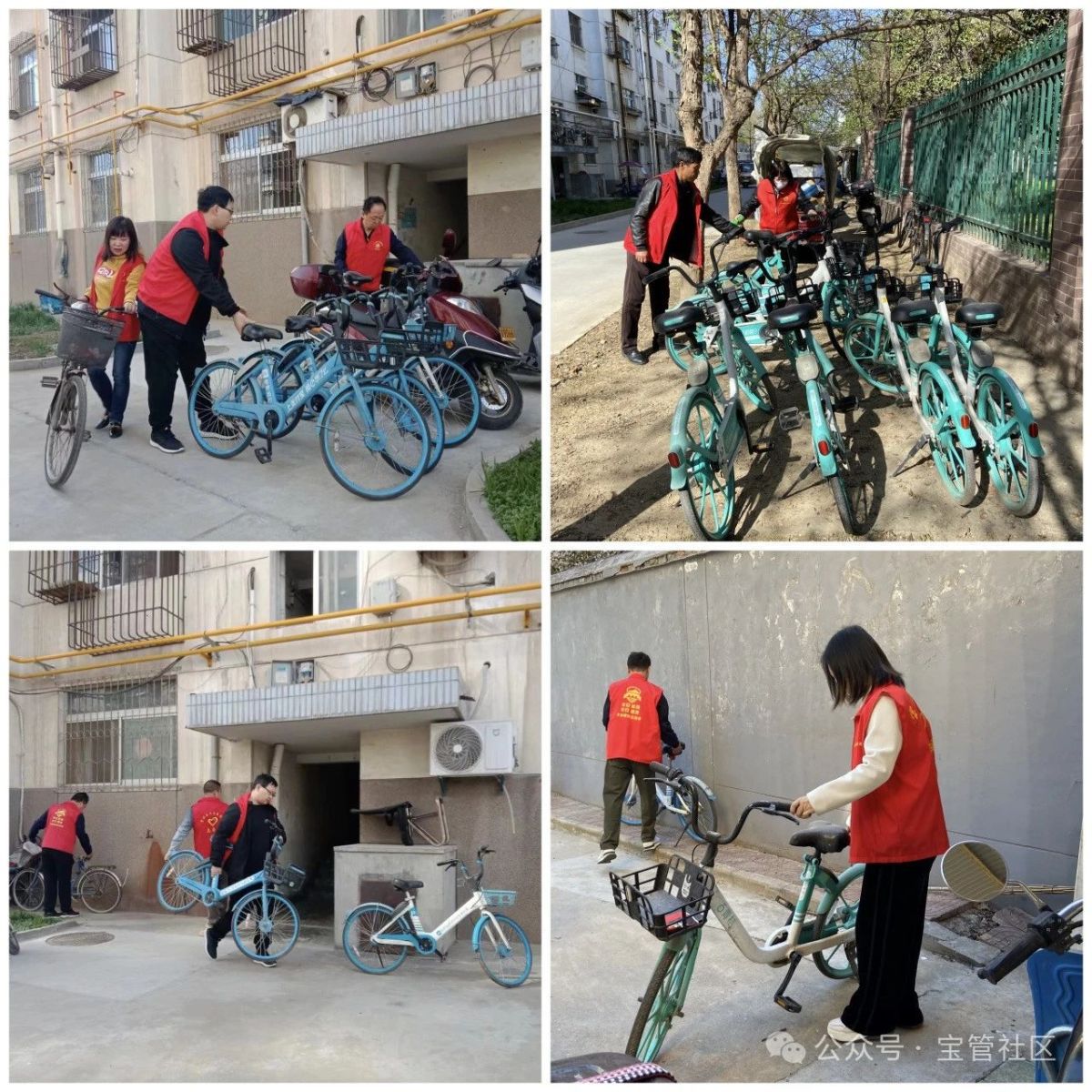 同时,志愿者们对小区内不规范停放的共享单车进行了集中整治,将小区内的共享单车集中摆放并联系相关部门及时清运。