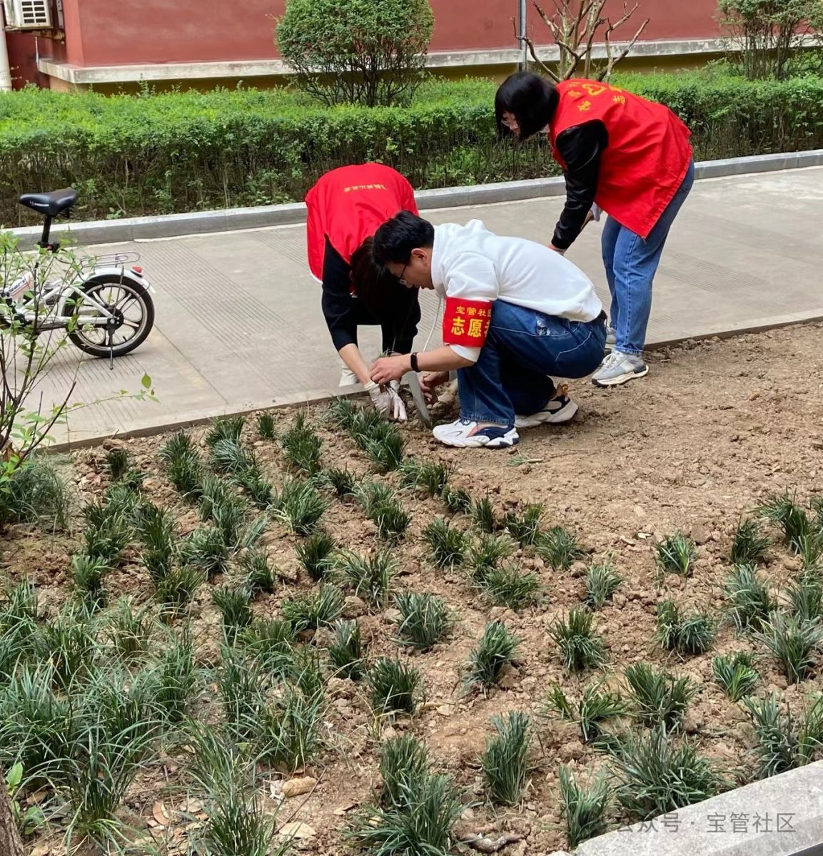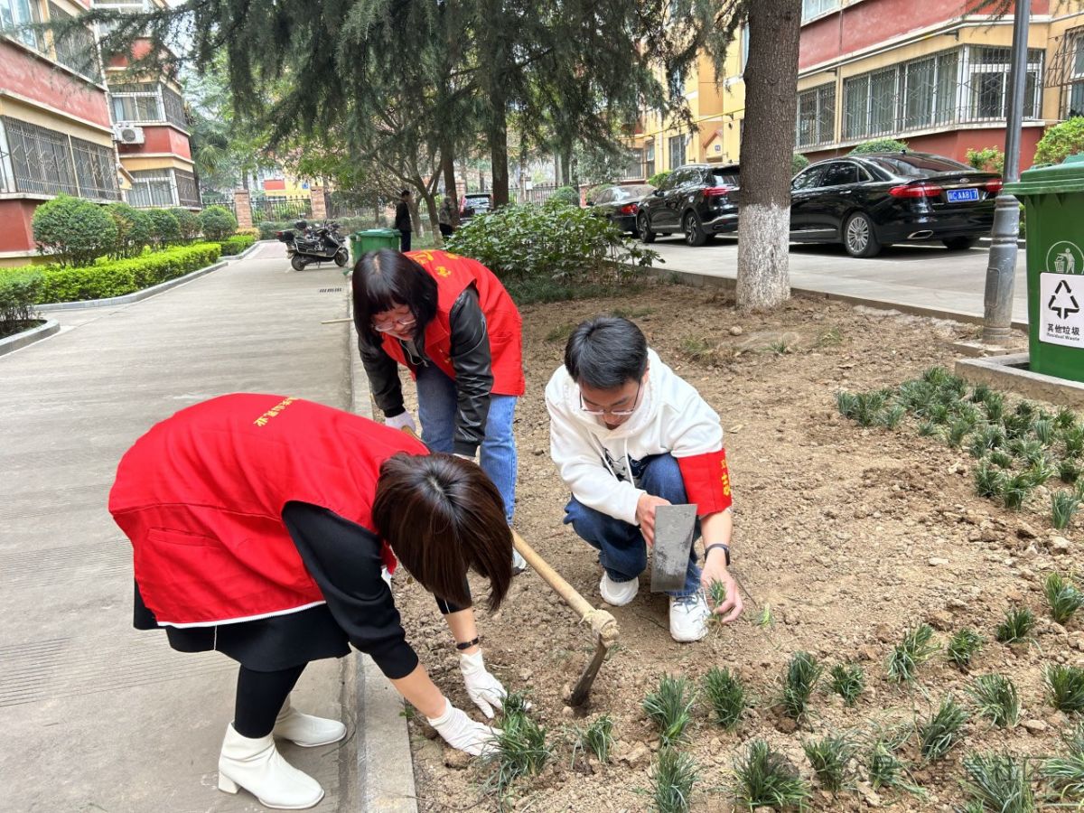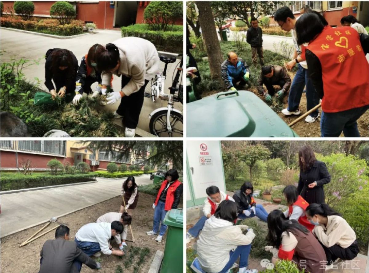 4月1日,宝管社区联合正能物业在宝管五区开展“‘植’此青绿 拥抱春天”植绿活动。