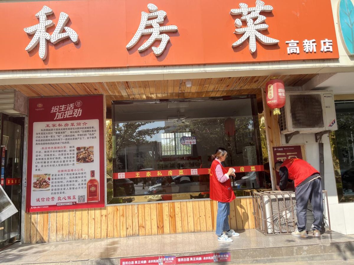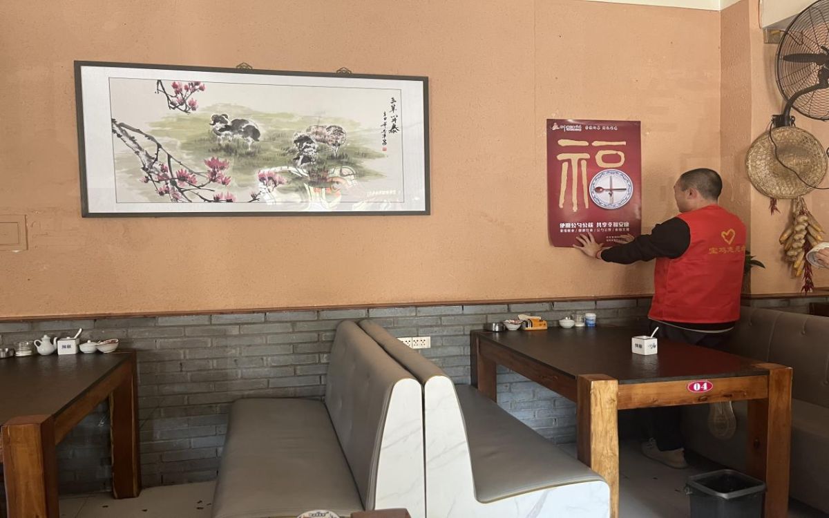 宣传现场,工作人员通过与餐饮商户交涉,在店铺醒目位置张贴“使用公勺公筷 共享幸福安康”海报,并且向商户提出倡议:在居民用餐时多为居民准备几副公筷并且从自身做起,在居民点餐初期预判食量情况并提出合理建议,避免点餐量大于用餐量,同时,主动提前为用餐人员准备打包袋等。督促餐饮单位自觉做好不浪费丁点粮食的服务准备,形成“科学、健康、绿色、文明”的用餐风尚,从根本上遏制餐饮浪费现象发生。