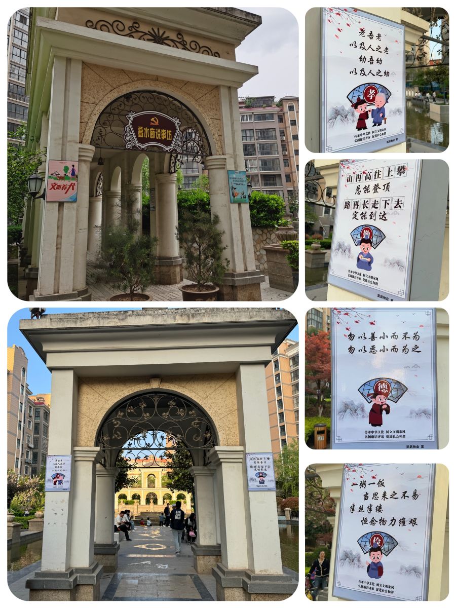 社区小区联动 宣传阵地联片。加强社区阵地建设,提升为民服务水平,整合社区资源,积极发挥物业党建联建作用,创新建立“场地共享、共融结对”平台,以辖区人口活动密集广场为切入点,改造提升凯跃小区党建微阵地“叠水廊说事坊”,与相邻亭廊联片、扩宽阵地面积,同时以“勤、孝、俭、德”为主题打造了“党建引领+家风家训”宣传廊,既美化了社区服务阵地,又强化了小区红色宣传引领,促进中华优秀传统文化的广泛传播的同时营造了浓厚的社区文化氛围,真正实现服务党员、服务群众“零距离”。