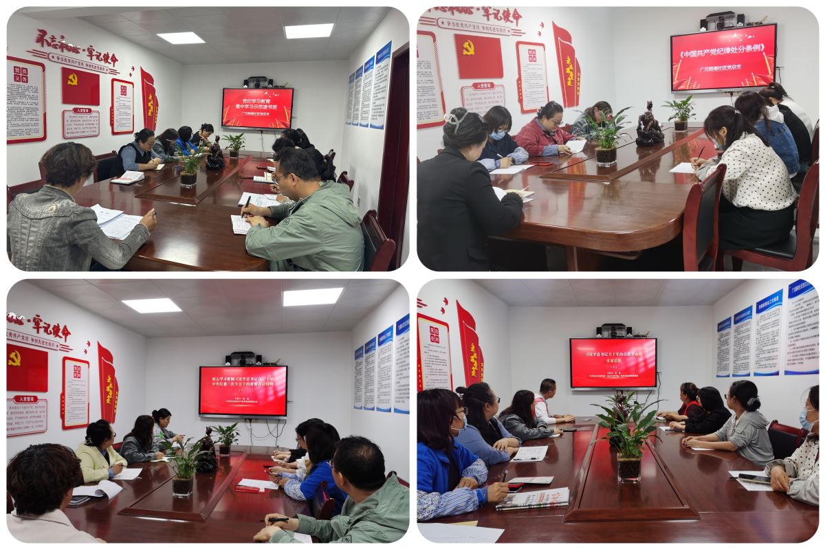 近日,中共中央办公厅印发《关于在全党开展党纪学习教育的通知》。《通知》指出,经党中央同意,自2024年4月至7月,在全党开展党纪学习教育。根据中央、省委、市委、区委会议精神及桥南街道党工委安排部署,广元路南社区党总支高度重视、迅速响应,组织社区工作人员及辖区党员干部开展党纪学习教育,以彻底的自我革命精神打扫政治“灰尘”,在学纪、知纪、明纪、守纪中“修身正己”。