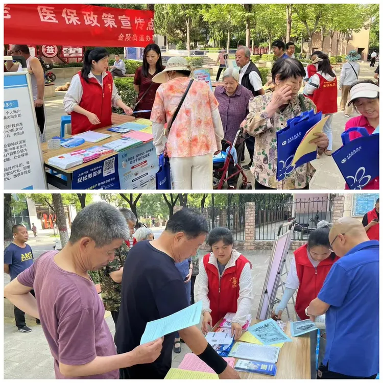 为提高辖区居民养老、医疗保险各项政策知晓度,扩大保障范围,提高保障水平,进一步做好2024年城乡居民养老保险参保缴费工作,打通政策宣传的最后一公里,5月22日上午,金渭路社区联和金陵街道办事处及渭滨区城乡居民养老、医疗保险管理中心工作人员在辖区金陵游园“劳务法治文化广场”开展了居民养老保险及医疗保险政策宣传活动。