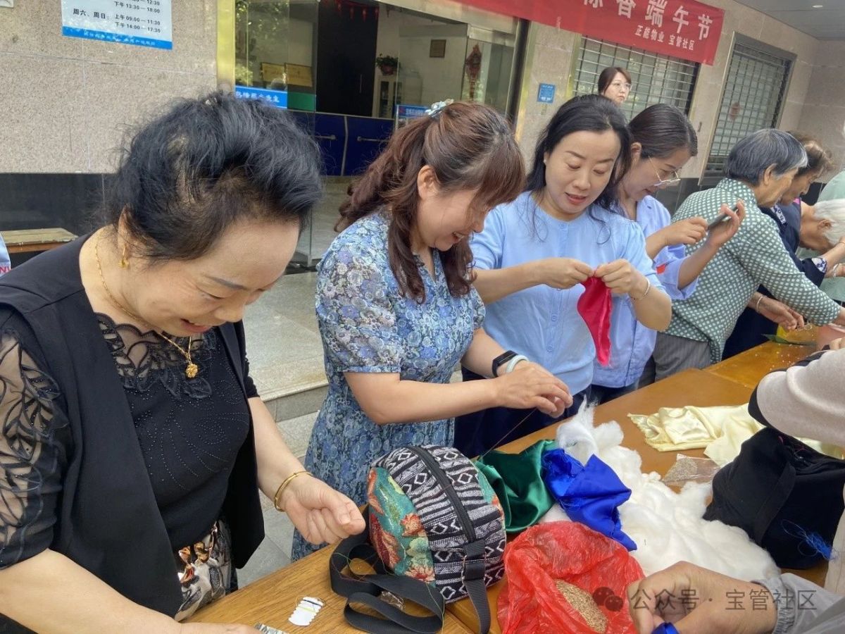 活动现场到处是淡淡的艾草清香,大家小心翼翼地填充着自己精心挑选的香料,每一针每一线都凝聚着对传统文化的尊重与传承。简单又充满乐趣的香囊制作活动,让大家在淡淡艾香中感受到了中华传统节日的独特魅力,得到了居民的一致好评。