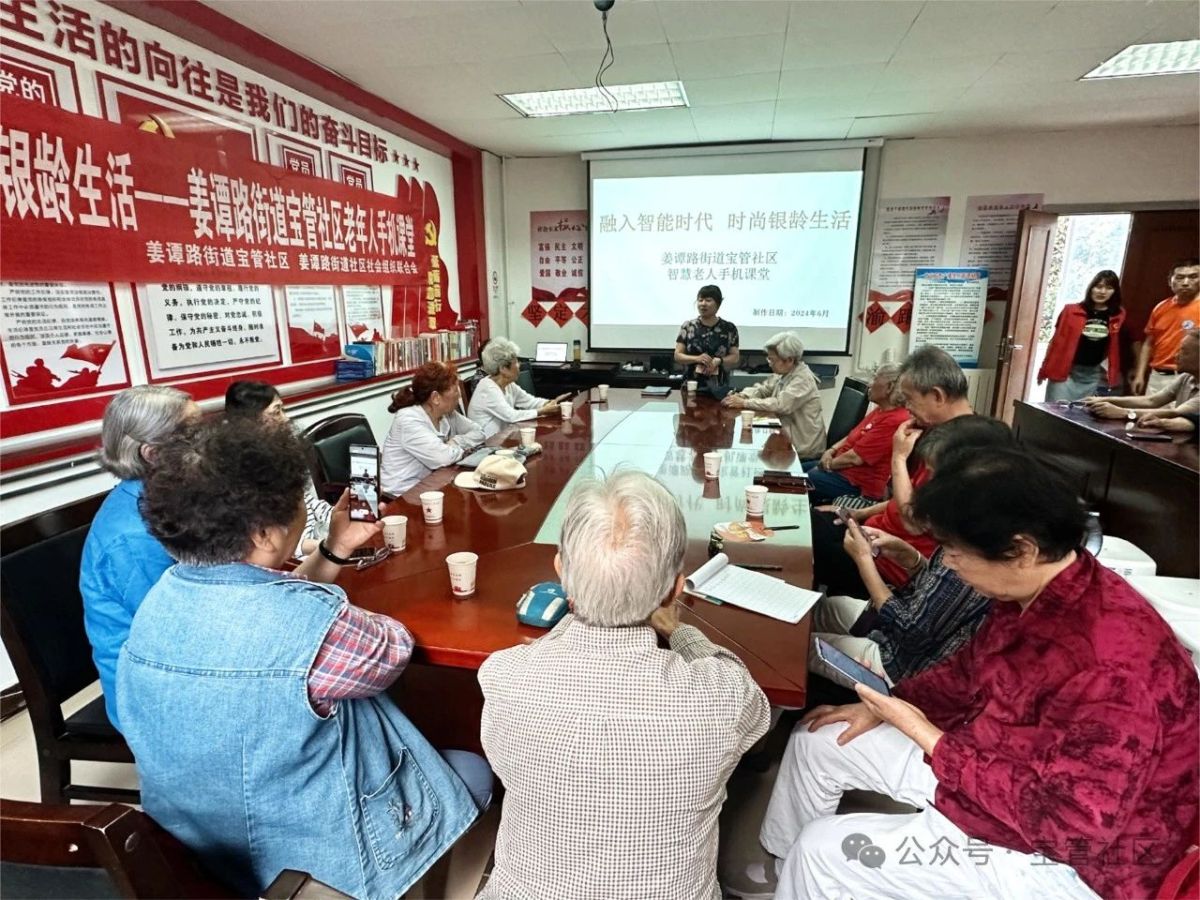 为帮助社区老年人适应信息飞速发展的时代,2024年6月11日,姜谭路街道宝管社区联合姜谭路街道社会组织联合会,在社区二楼多功能室举办“融入智能时代 时尚银龄生活”老年人智能手机培训班,使老年人享受方便快捷的智能服务。