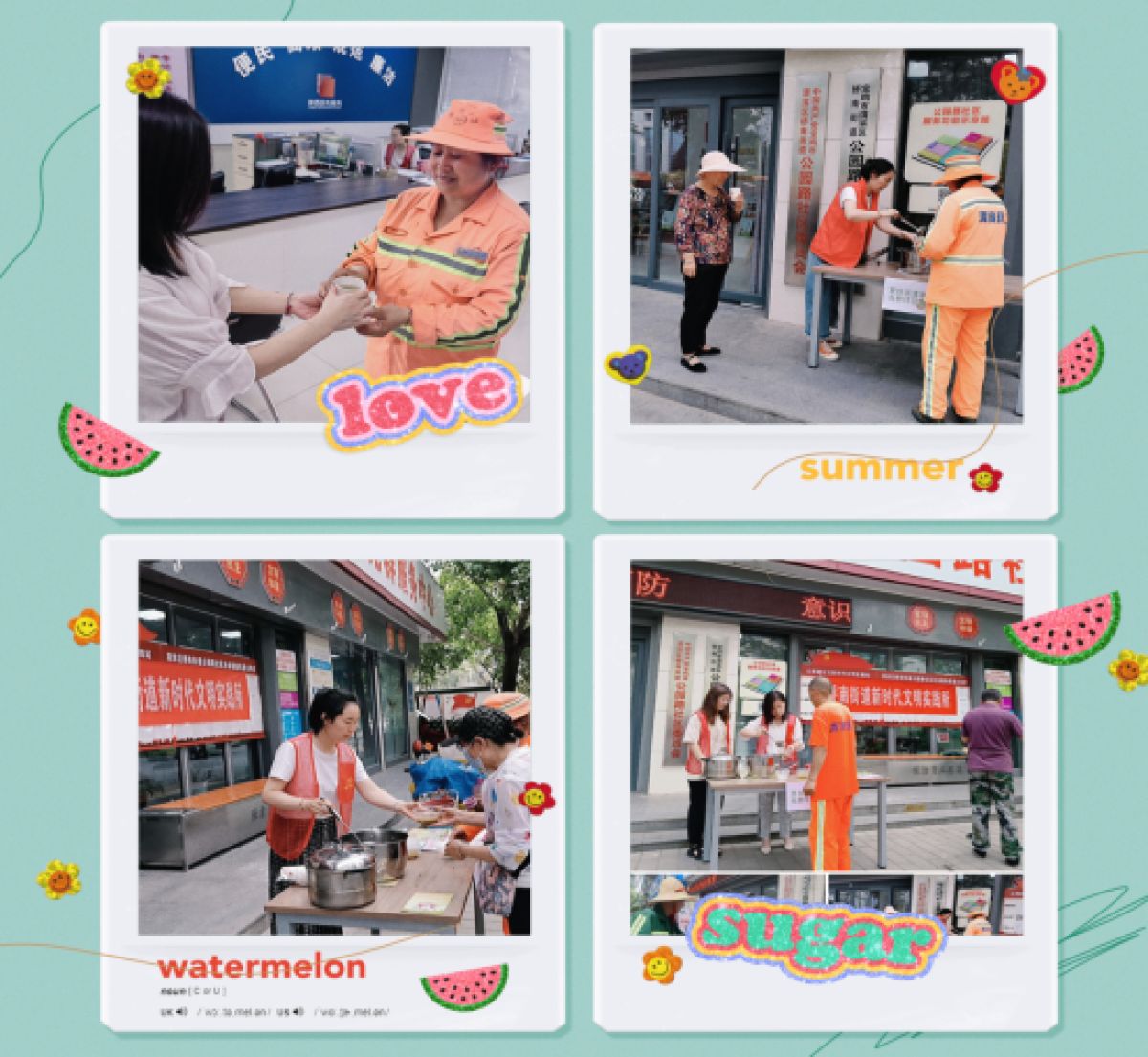 “这会正好渴了,你们的绿豆汤真及时”。社区门口设立了专门的领取点,为往返居民、环卫工人、绿化工人、快递员取用,同时,还为居民提供义诊、健康咨询、政策讲解等志愿服务。与此同时,社区便民服务站内还配备防暑药品、清凉菊花茶、手机充电宝、报刊等物品免费使用,让户外劳动者在炎热的夏季歇歇脚、降降温,也让整个社区的氛围变得更加和谐、温馨。