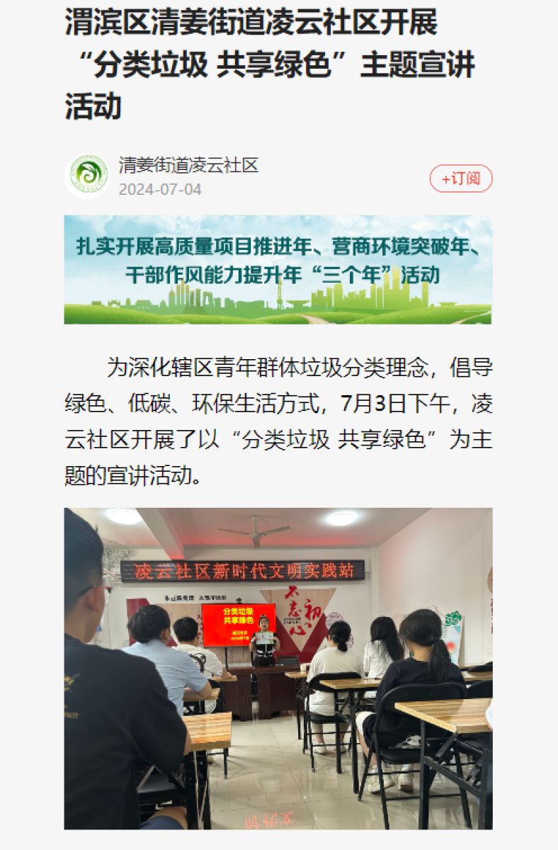 渭滨区清姜街道凌云社区开展“分类垃圾 共享绿色”主题宣讲活动