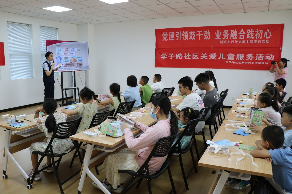 8月1日上午,学子路社区联合渭滨农商银行新城支行开展暑期课堂系列活动——“我是小小银行家”金融体验活动,为辖区学生和家长讲解如何分辨真假币,用练功钞练习数钱技巧等,并实地参观银行。讲解各个功能区,带领孩子们认识人民币、揭开银行的奥秘,树立正确的金钱观念,激发对财经世界的好奇心。